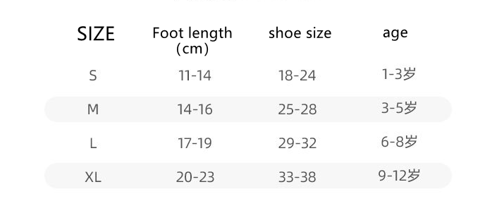 S (1-3 years old), M (3-5 years old), L (6-8 years old), XL (9-12 years old)