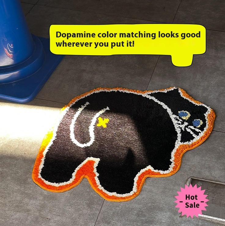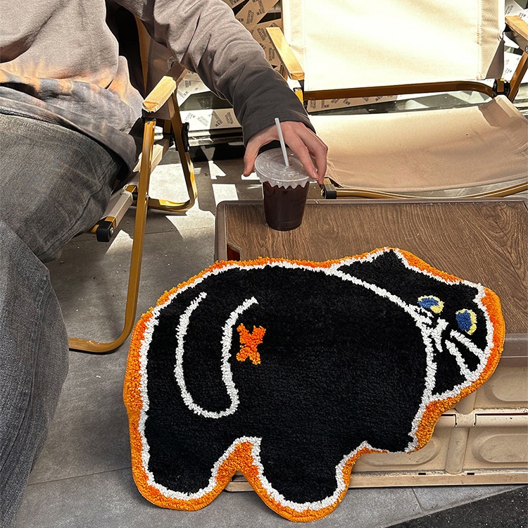 Cartoon Cat Black Cat Flocking Carpet Tufted