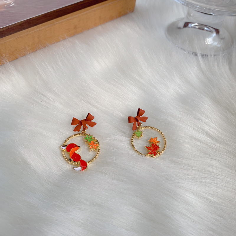 Color: A pair of S925 silver needle small fox earrings