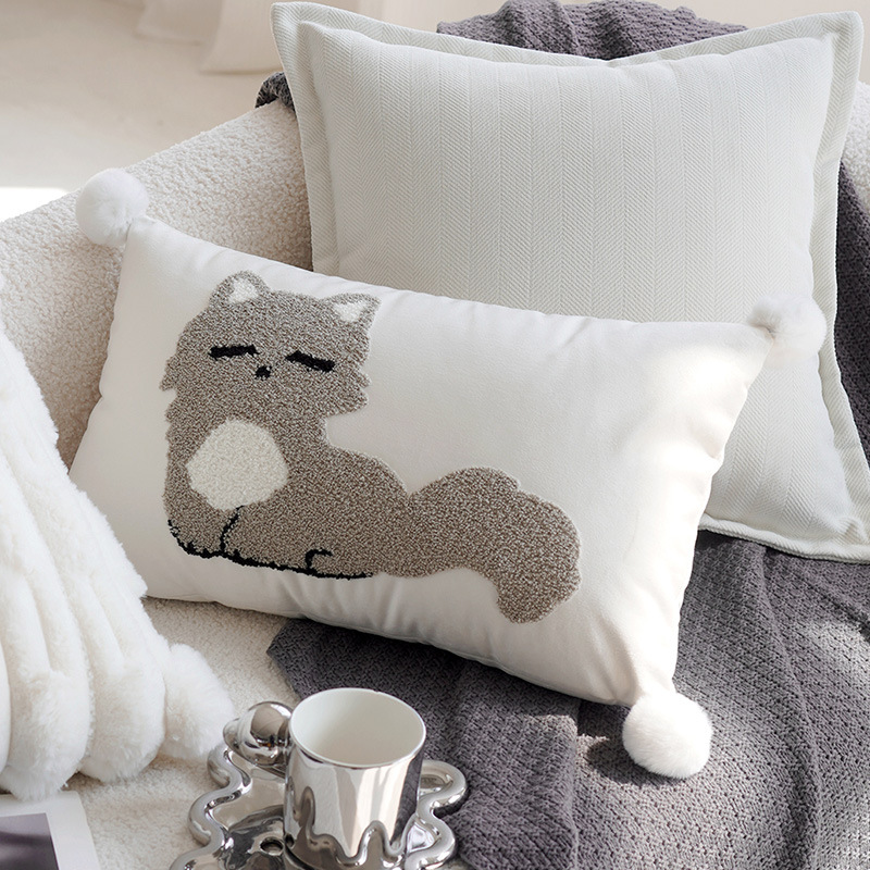 Color: Brown big tail cat rectangular 30 x50cm, Brown big tail cat square 45 x45cm, Gray big tail cat rectangular 30 x50cm, Gray big tail cat square 45 x45cm, embroidered big black round 45 x45, embroidery large brown round 45 x45, white bamboo plush square 45 x45cm, white bamboo plush rectangular 30 x50cm, charcoal black herringbone hem 45 x45cm, milky white herringbone hem 45 x45cm, milk khaki herringbone hem 45 x45cm, brown herringbone hem 45 x45cm, Brown concave and convex dot square 45 x45cm, white velvet square 45x45cm