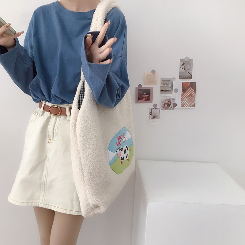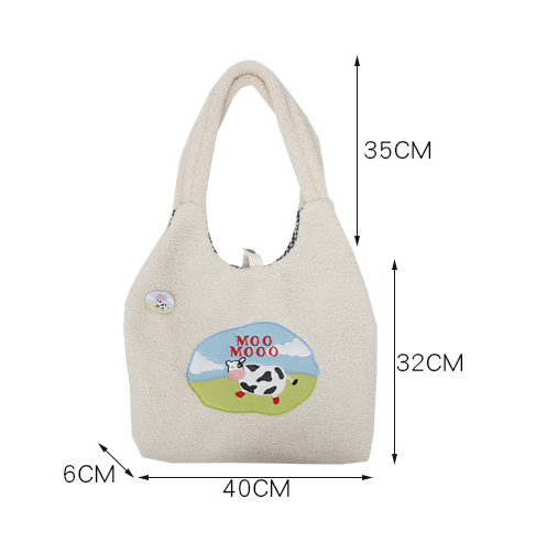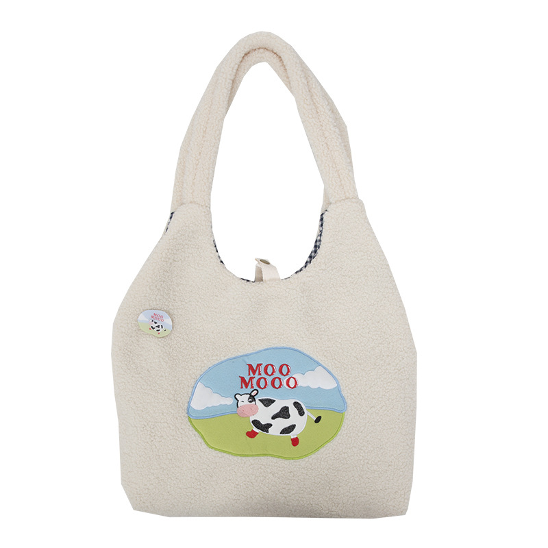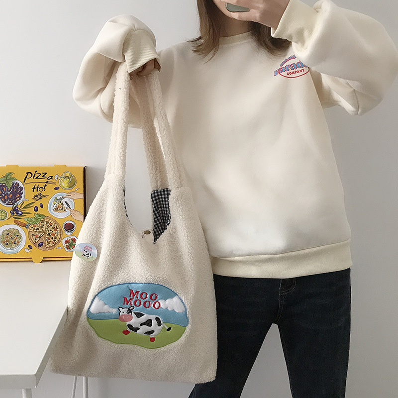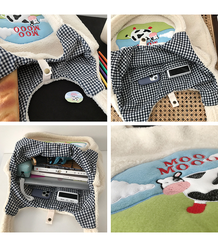 Color : Moo Cow Embroidered Lamb Fleece Large Capacity