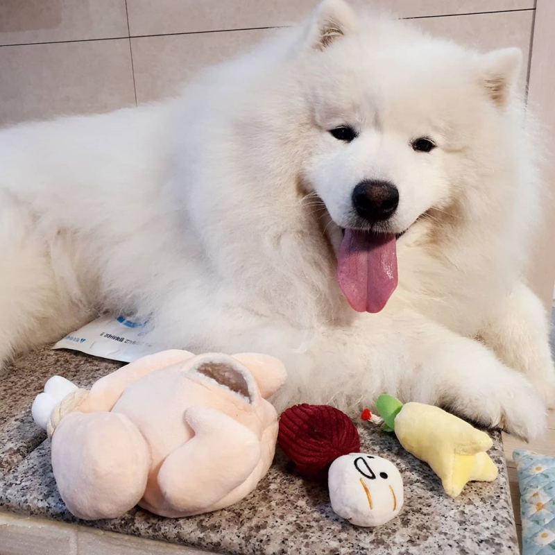 Parents can put all the parts and snacks in the chicken, let the dog sniff