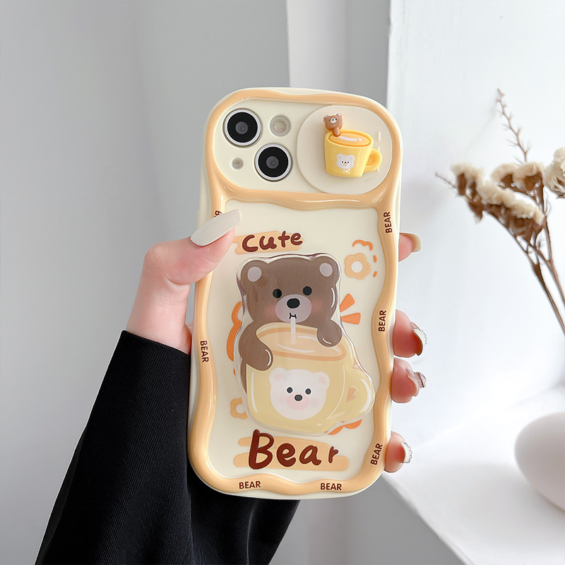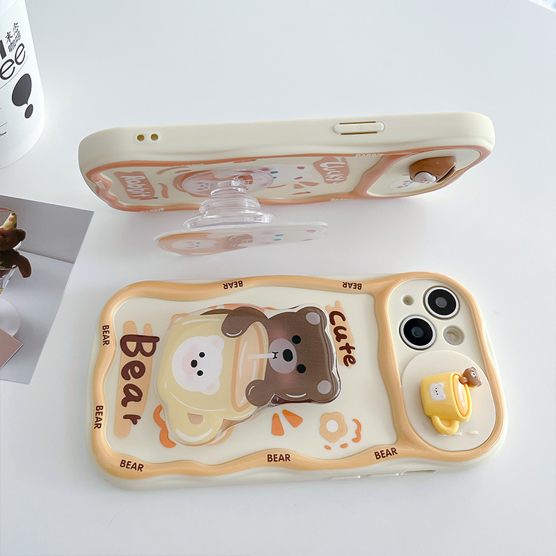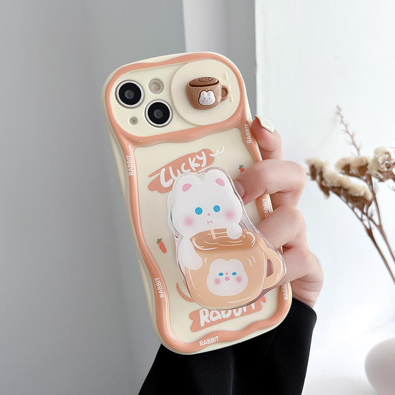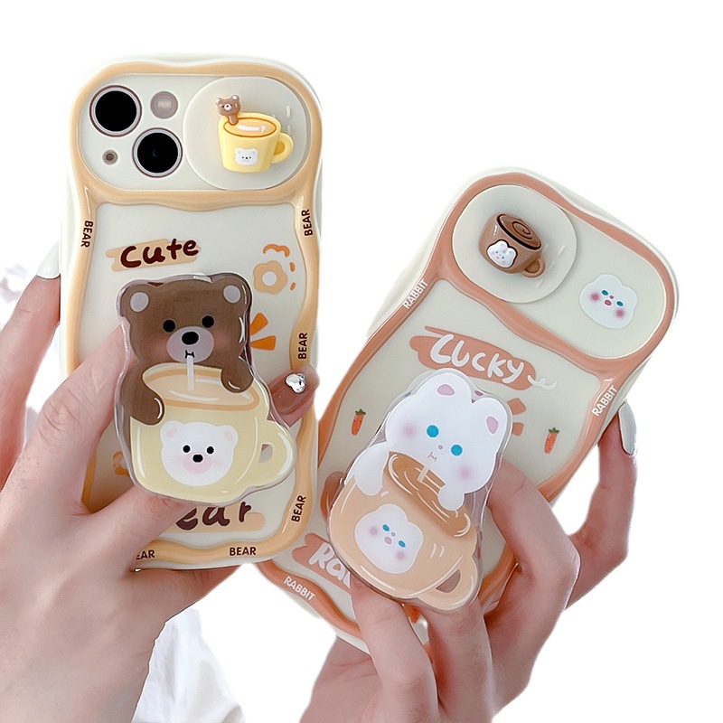 Cartoon Cute Three-dimensional Sliding Window Bear Rabbit Bracket Phone Case