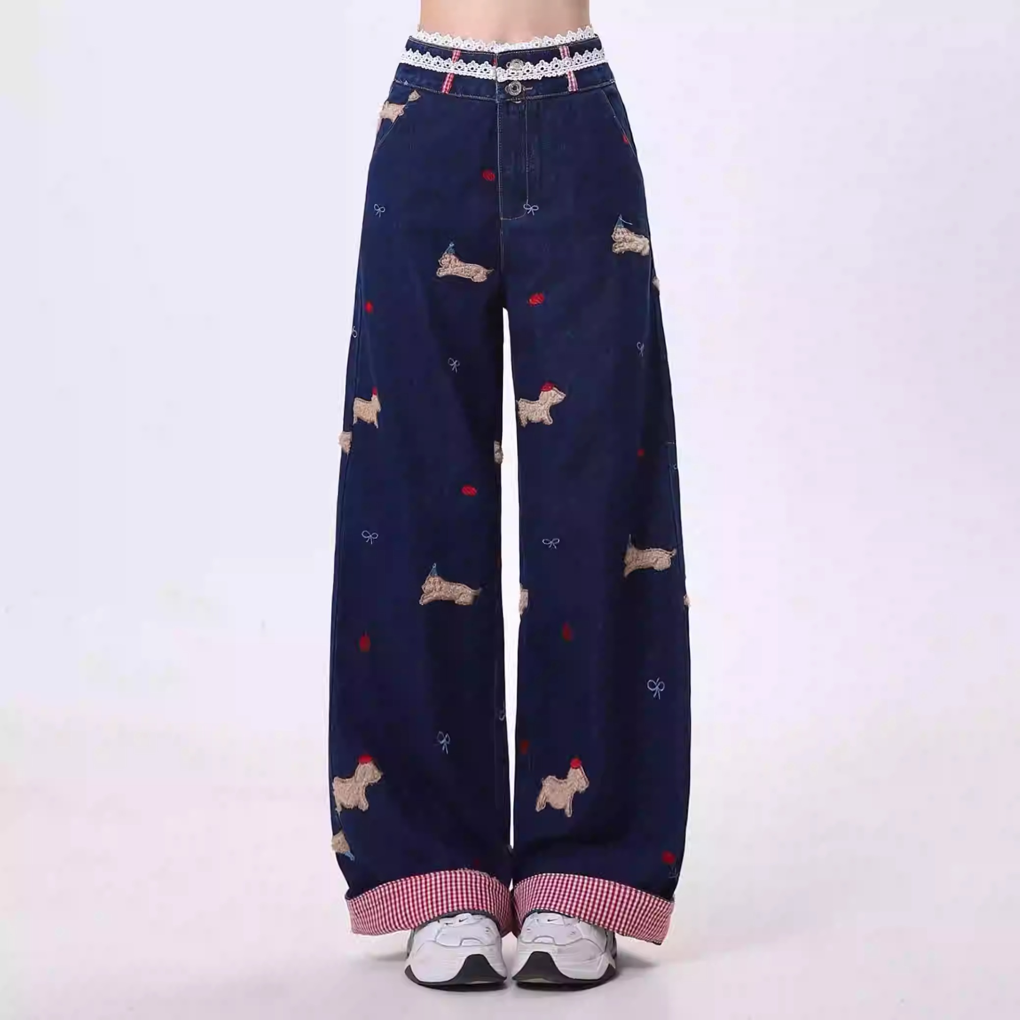 Cartoon Embroidery Straight Leisure Harajuku Lazy Wide-leg Jeans