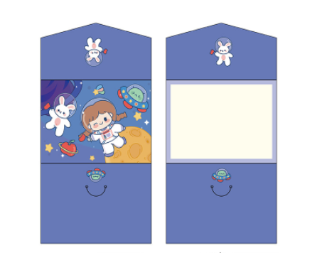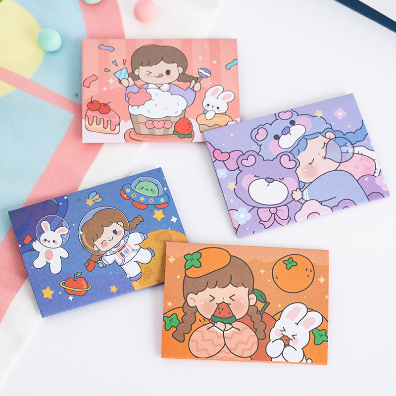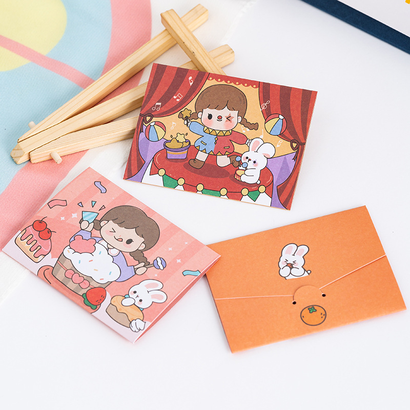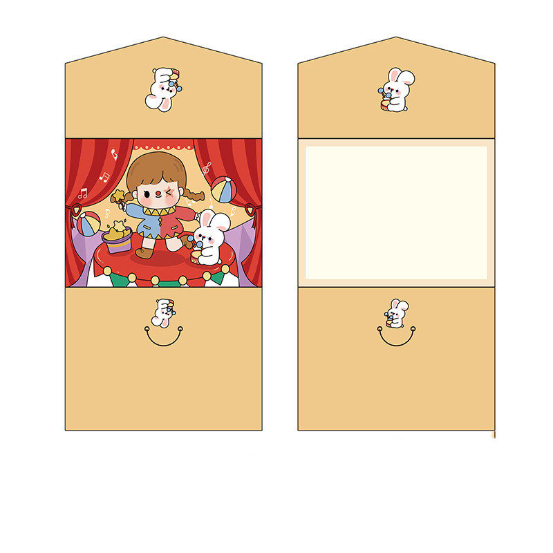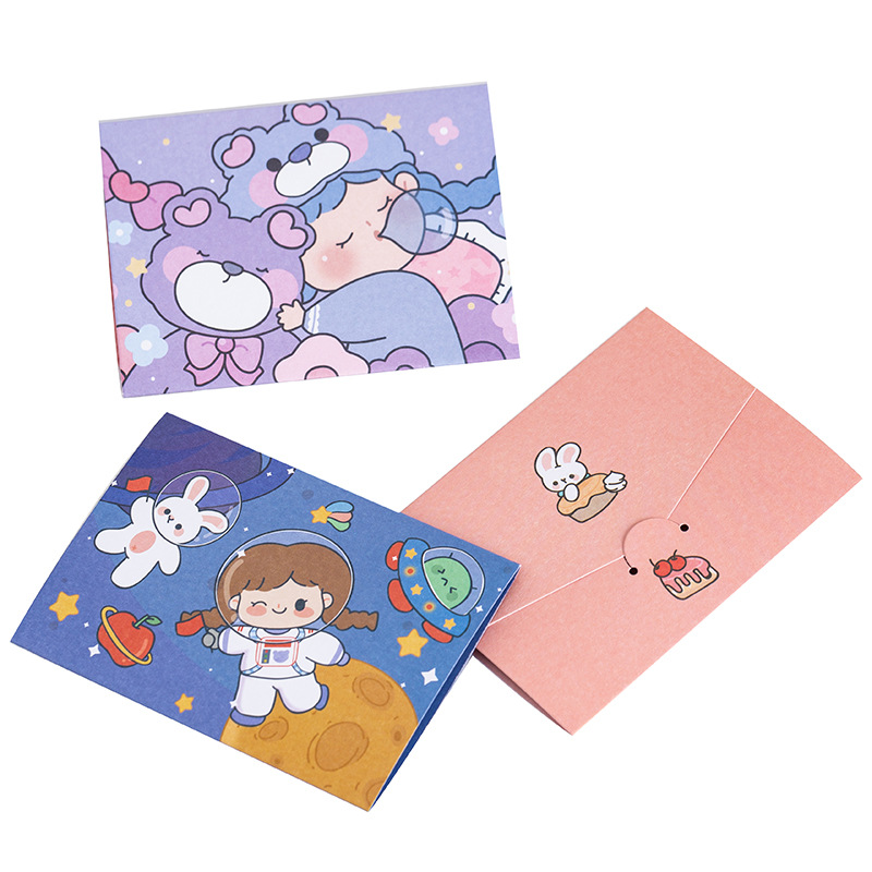 Color: tri-fold small greeting card blue space girl, tri-fold small greeting card purple bear girl, tri-fold small greeting card yellow bunny girl, tri-fold small greeting card yellow circus girl, tri-fold small greeting card pink cake girl, tri-fold small greeting card orange orange girl