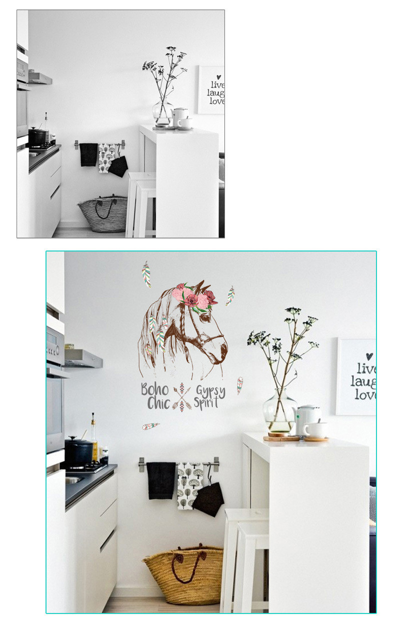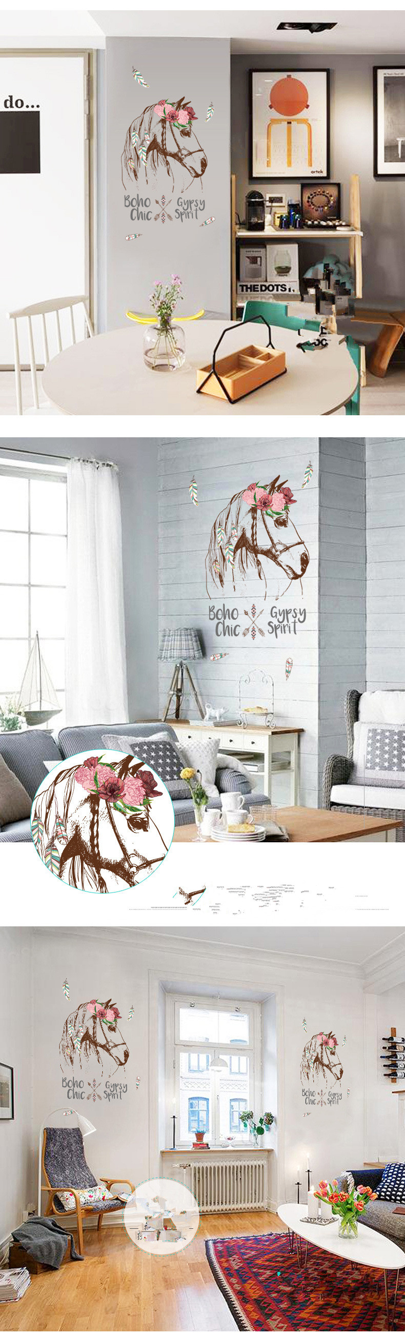 Cartoon Horse Head English Wall Stickers Creative Home Beautification