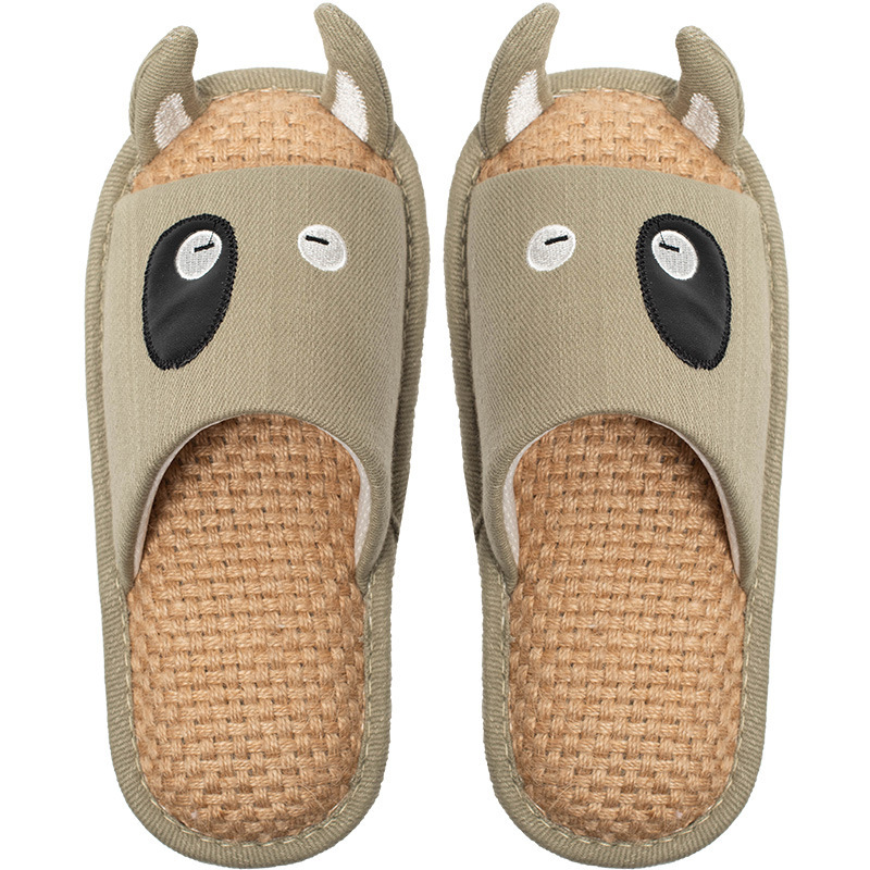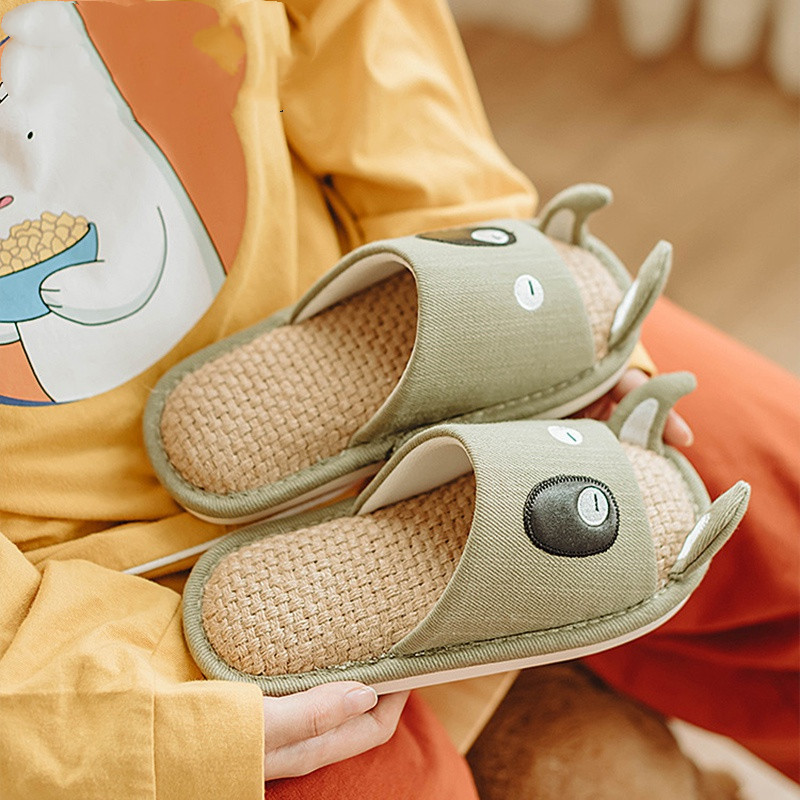Cartoon Linen Slippers Cotton Hemp Japanese Summer Thick Soled Home Four Seasons Home Interior Fabric Antiskid Silent