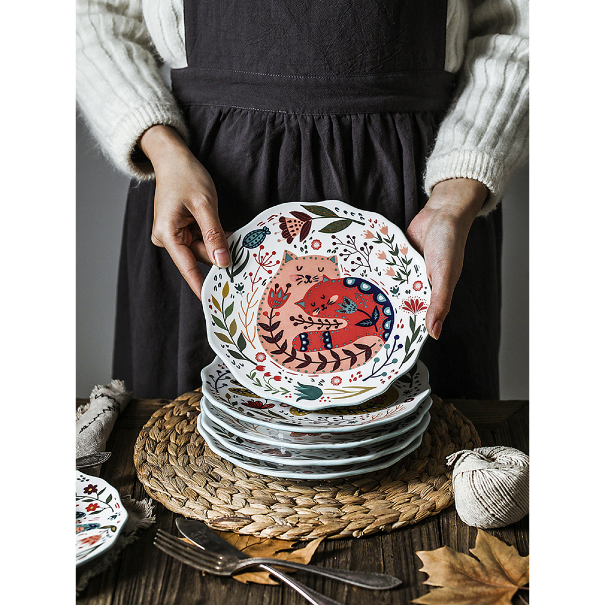 Cartoon Lucky Cat Round Plate Ceramic Color Dinner Plate Dish Plate Nordic Tableware