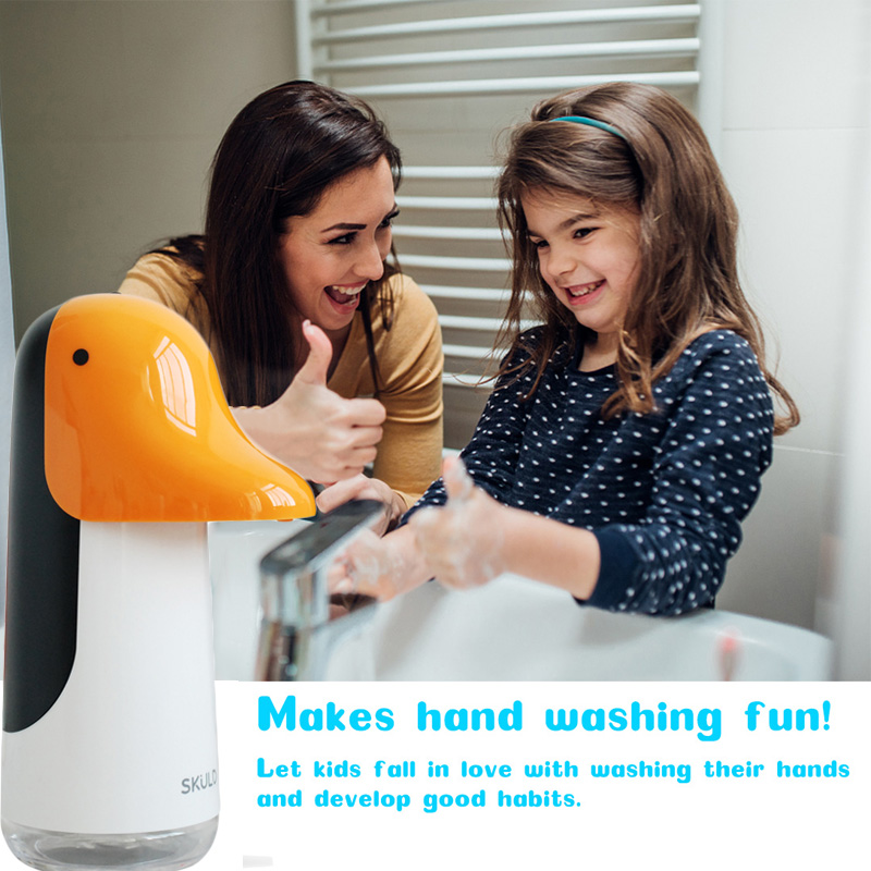 Without the need of directly touch, you can simply put your hand under the soap dispenser to get instant fully bubbles thanks to its built-in infrared motion and PIR sensor detection technology. It creates super rich bubbles and can reduce the use of liquid soap at least 50%. Designed with cute penguin,kids will love it!