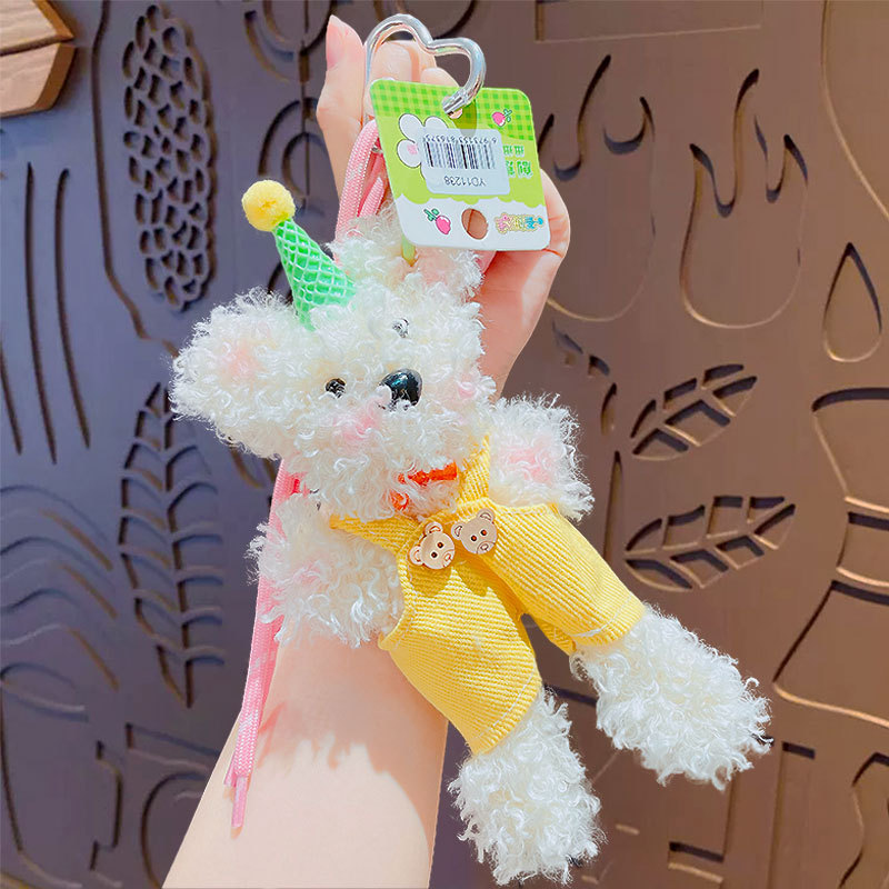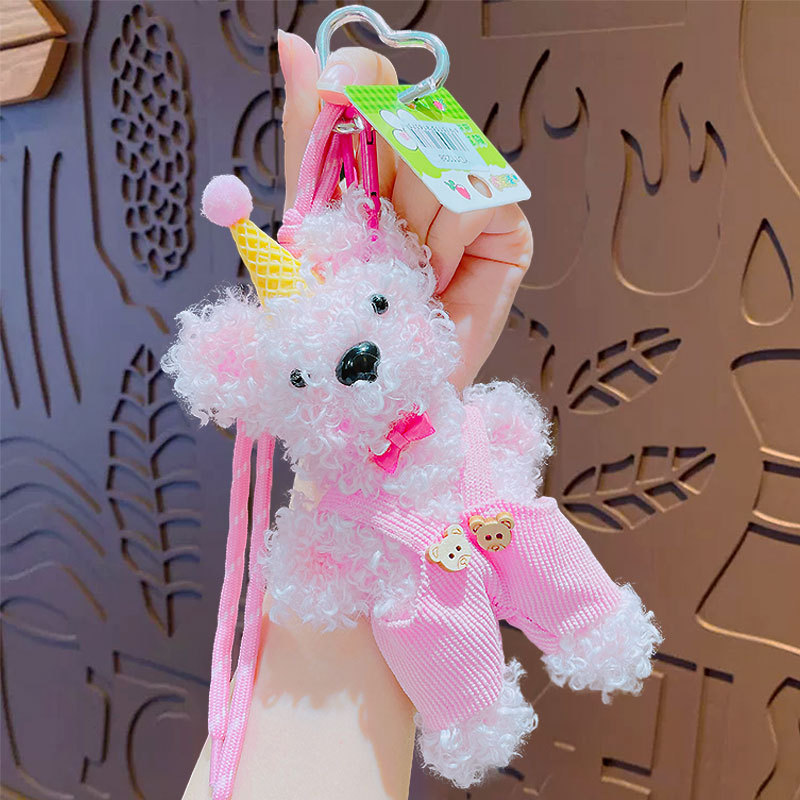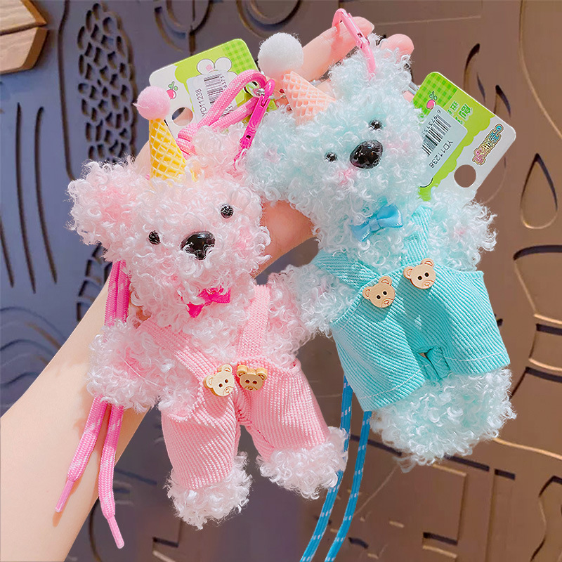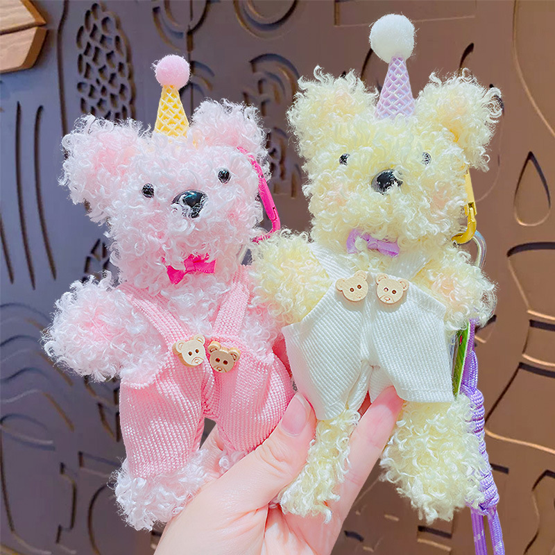 Color: birthday hat bear torsion bar pendant-pink, birthday hat bear torsion bar pendant-blue, birthday hat bear torsion bar pendant-Milky White, birthday hat bear torsion bar pendant-beige