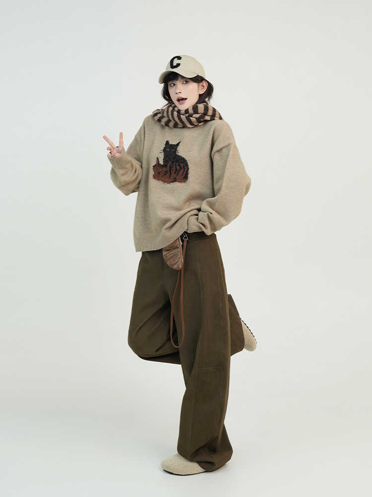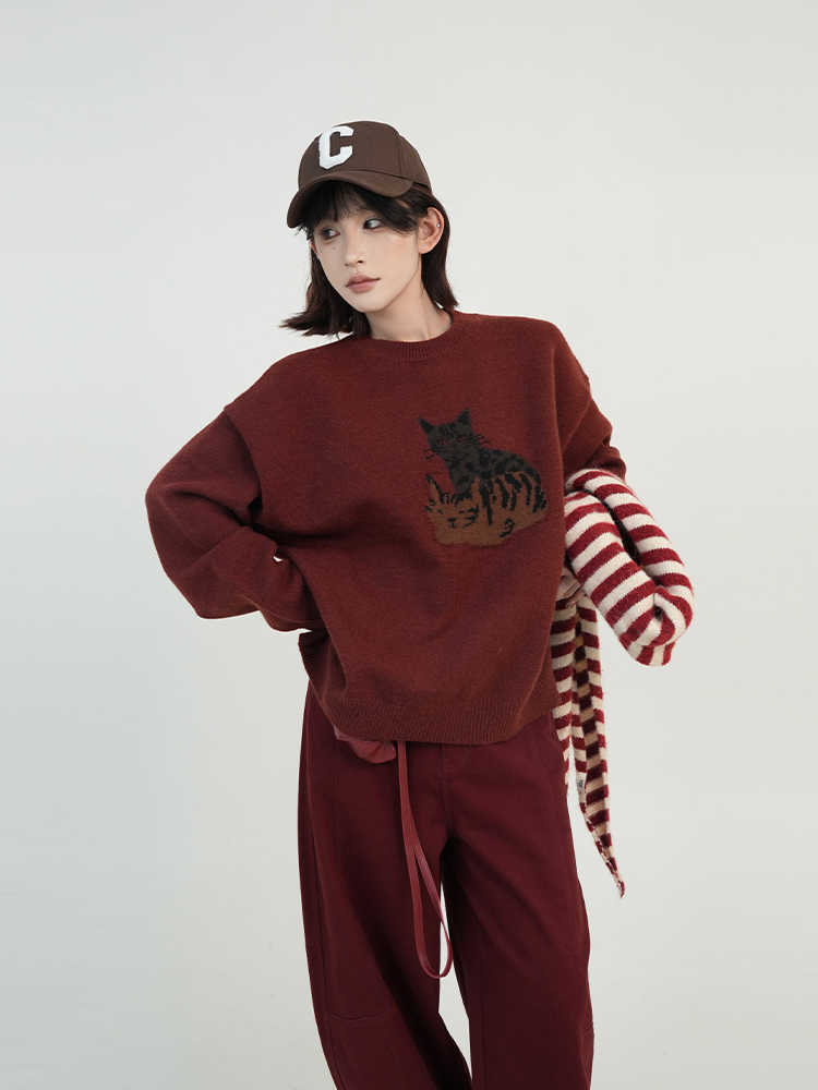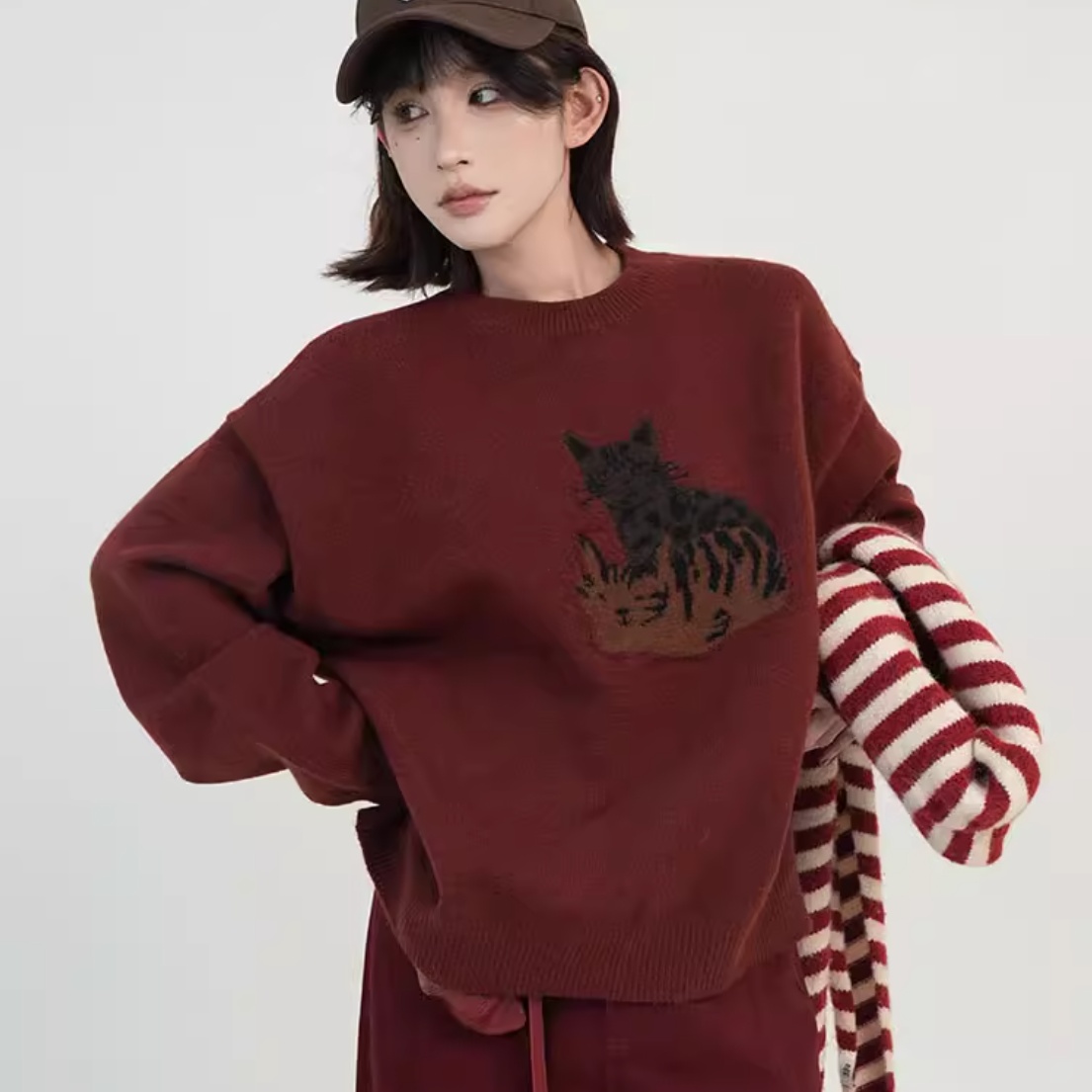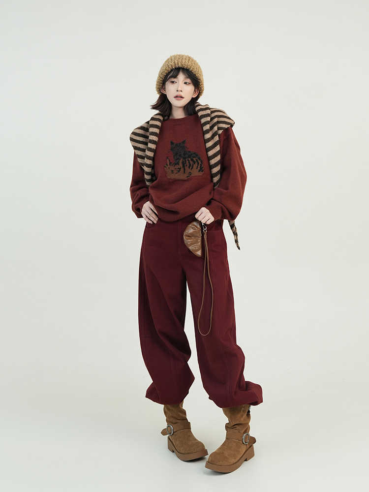 Color classification: dark red sweater, khaki sweater