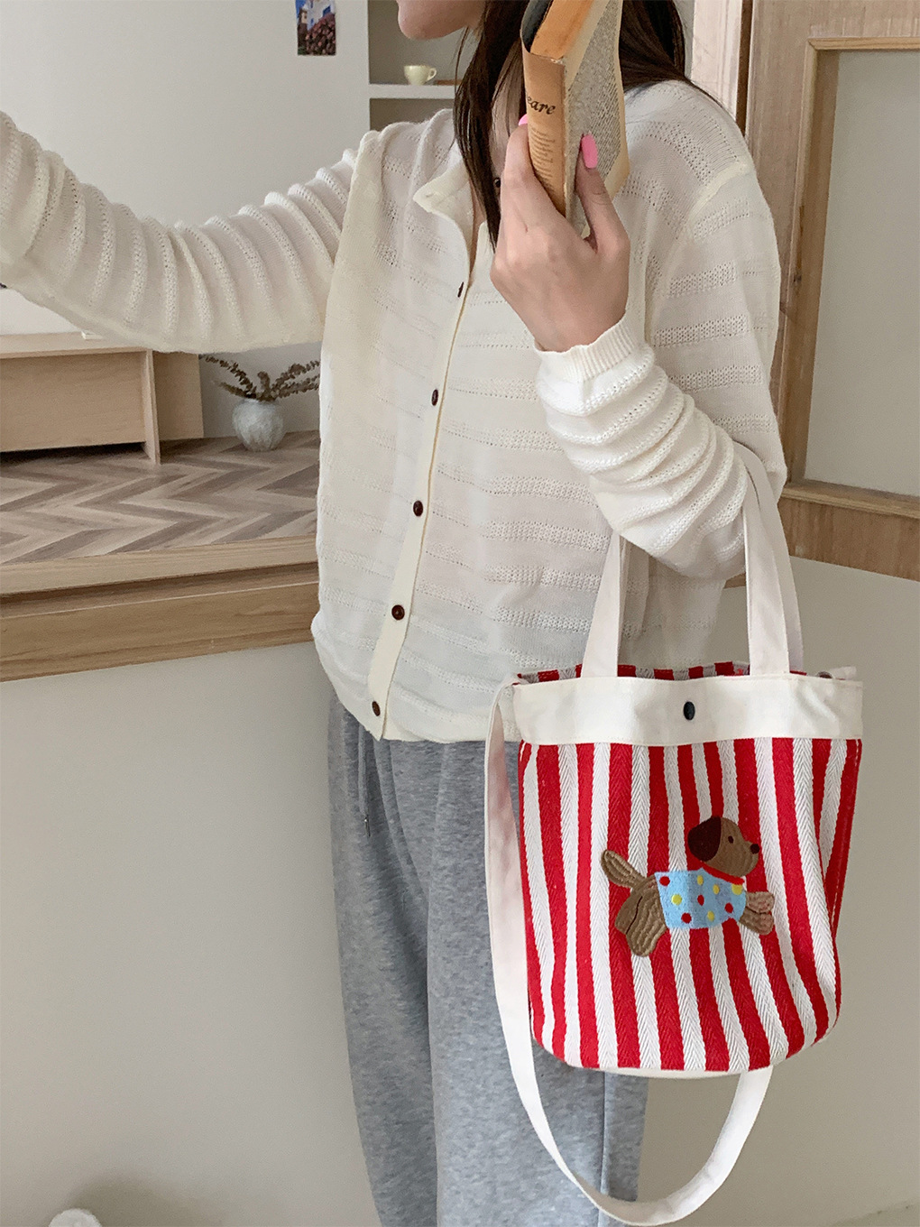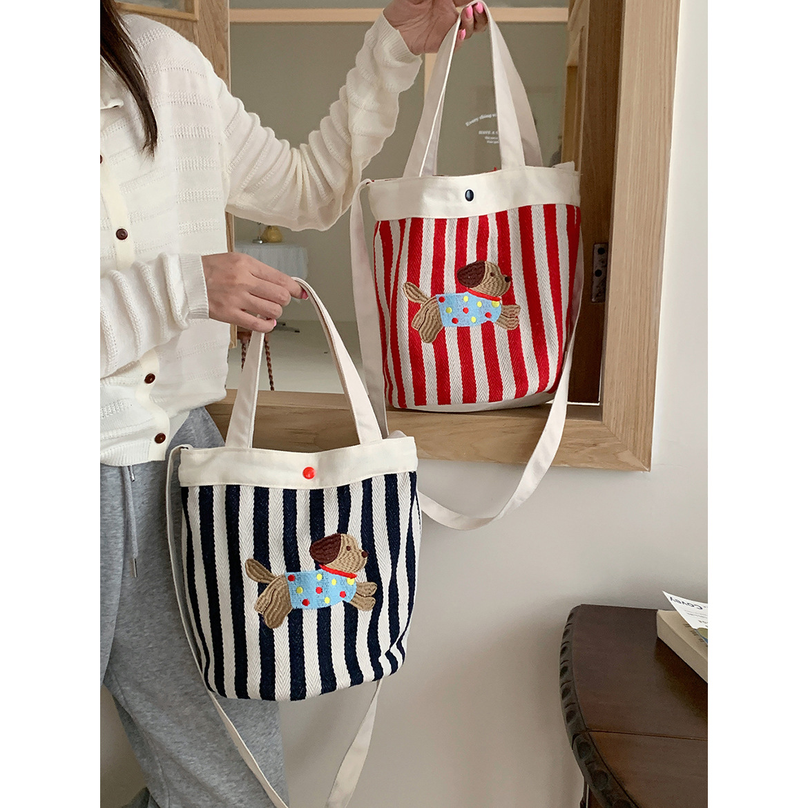 Color: Puppy bucket bag-red stripes, puppy bucket bag-purple blue stripes