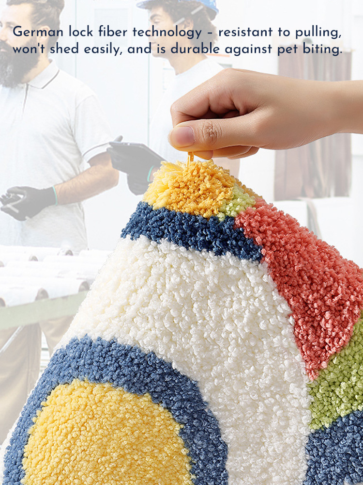 2.Lovely and simple: The design of the floor mat is simple and lovely, there is no complicated pattern and pattern, only a simple rainbow pattern, giving people a clean and fresh feeling. This design makes the floor mat suitable for a variety of decorative styles of the room, will not be obtrusive.