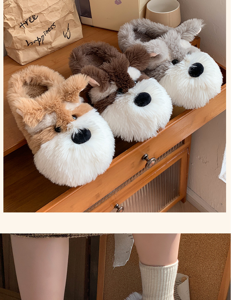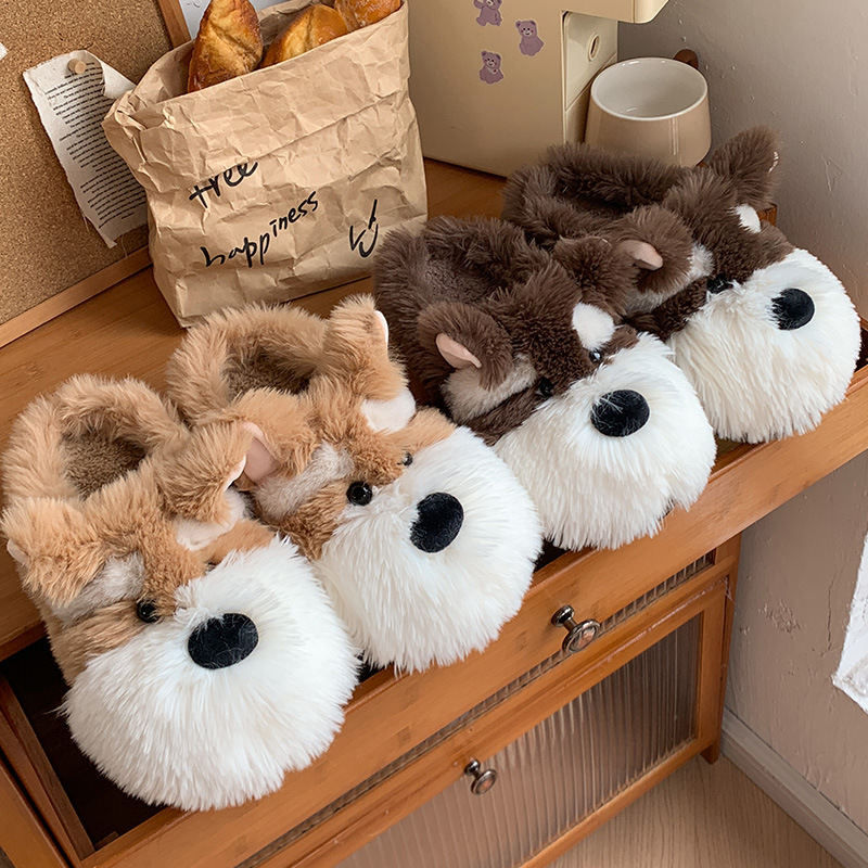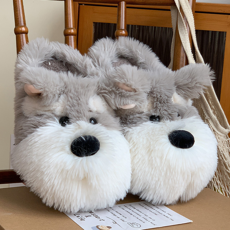 Cartoon Schnauzer Puppy Cotton Slippers Men And Women