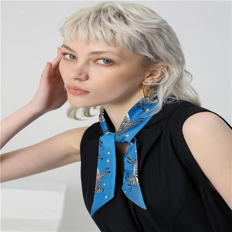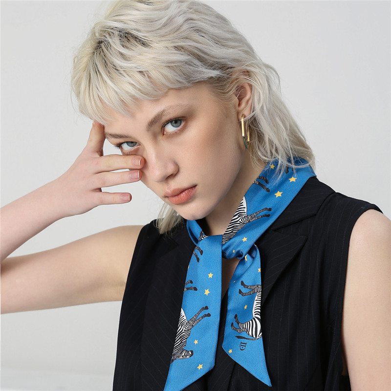 Material: Silkcolor: blueLength (CM): 93cmWidth (CM): 5cmWeaving method: twillStyle: Small scarf