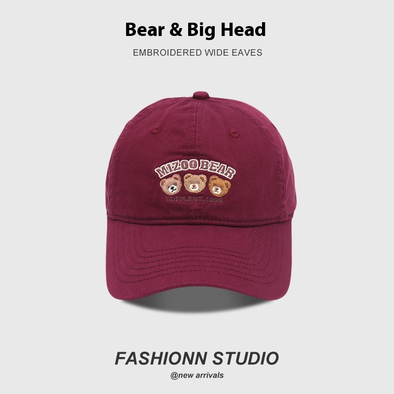 Color: three bear baseball cap-mint green, three bear baseball cap-pink, three bear baseball cap-black, three bear baseball cap-gray, three bear baseball cap-dragon fruit color, three bear baseball cap-Burgundy, three bear baseball cap-khaki, three Bears baseball cap-beige