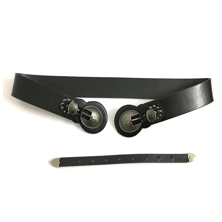 Carved Double Head Buckle Black Lady's Belt