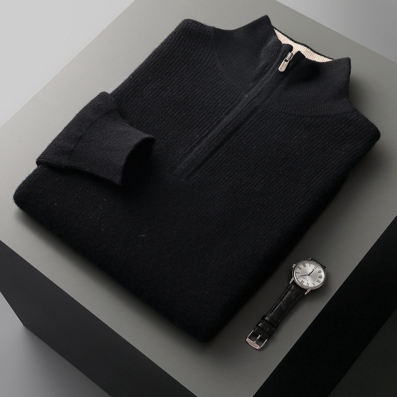 Cashmere Men's Thickened Half-high Collar Zipper Pullover Sweater