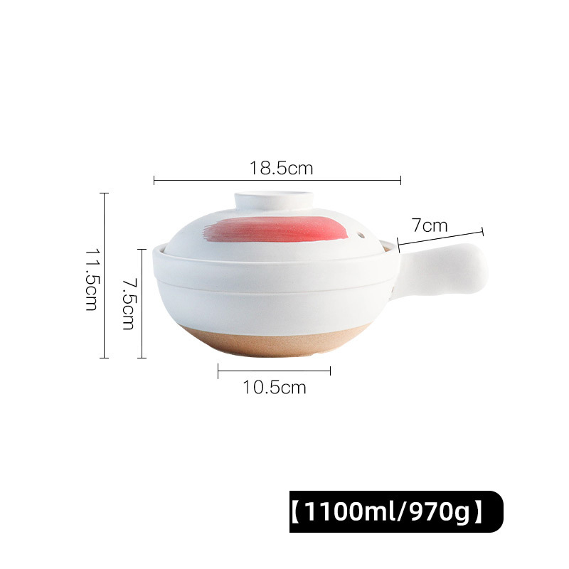Color: Small single-handle casserole [white-red brush pattern] (for one person, small single-handle casserole [white-green brush pattern] (for one person), small single-handle casserole [black-red brush pattern] (for one person) ), small single-handle casserole [black-grey brush pattern] (for one person), small single-handle casserole [non-glazed body] (for one person), large single-handle casserole [white-red brush pattern] (for two persons) Small portion), large single handle casserole [white-green brush pattern] (small serving for two persons), large single handle casserole [black-red brush pattern] (small portion for two persons), large single handle casserole [black- Grey brush pattern] (two small servings), large single-handle casserole [non-glazed pot body] (two small servings)