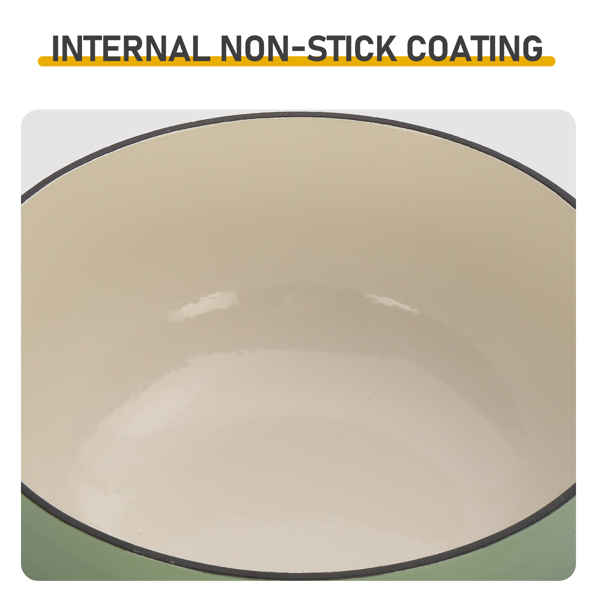 Double-layer enamel process on both the inside and outside, with a high-gloss finish on the exterior and a non-stick design enamel layer (the non-stick enamel layer resists stubborn stains).