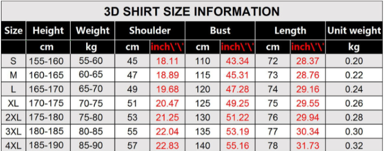 Size: S,M,L,XL,2XL,3XL,4XL,5XL