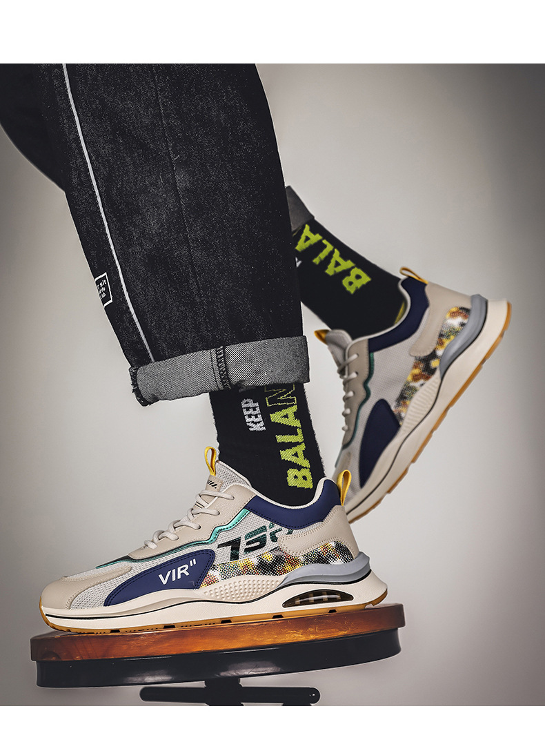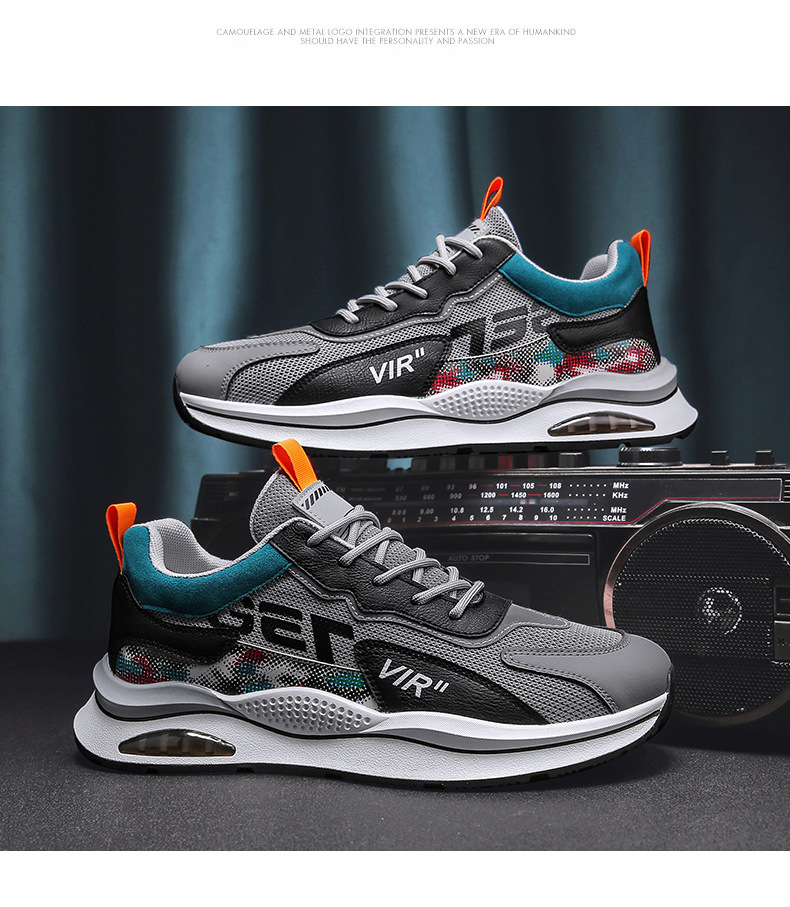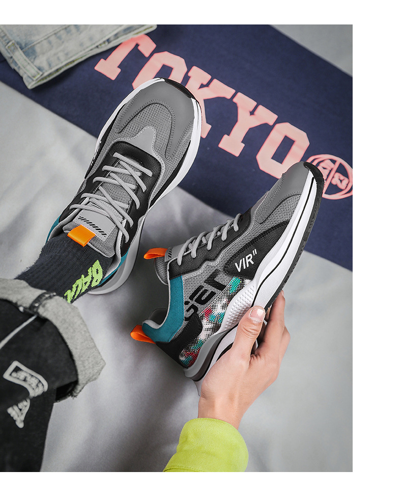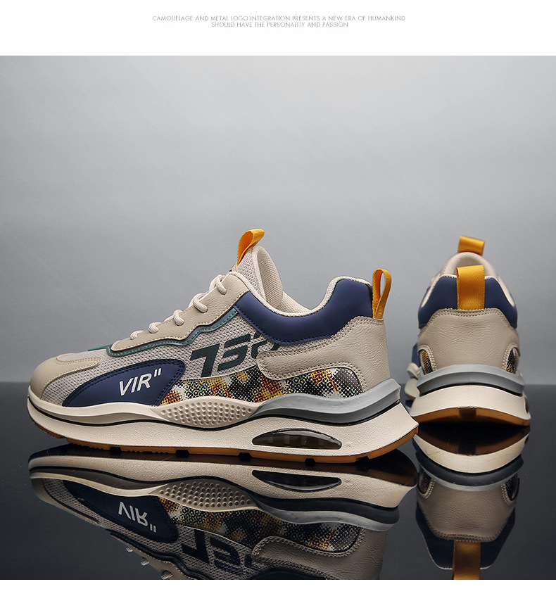 Pattern: color matching Upper material: leather + mesh Sole material: PVC rubber Applicable sports: general How to wear: Front tie Popular elements: stitching, color matching Heel shape: thick sole Inner material: mesh