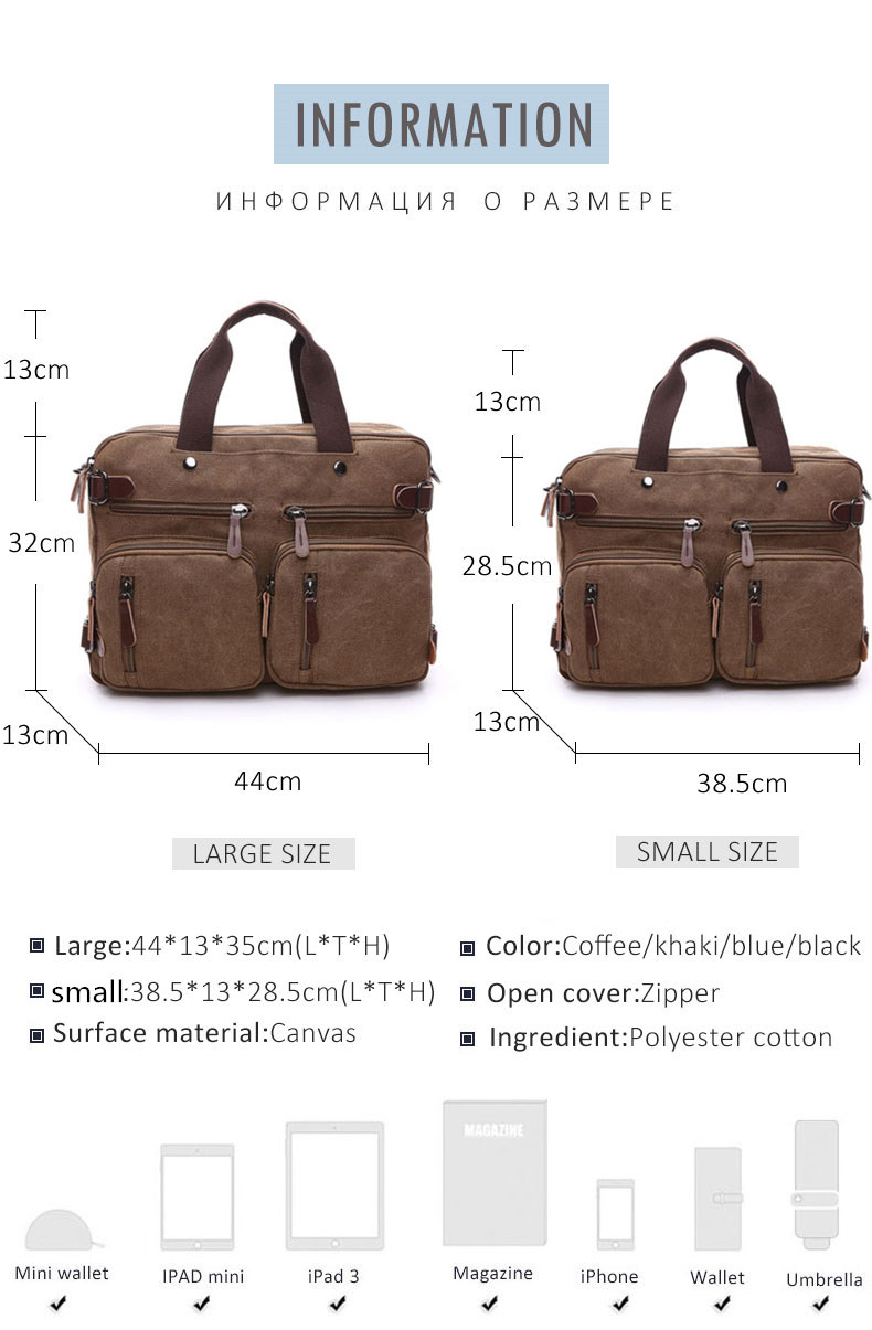 Structure: main bag, concealed compartment bag, mobile phone bag, document bag