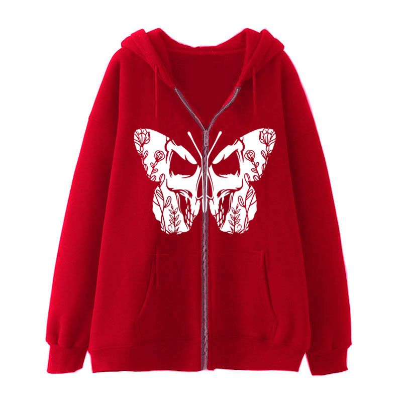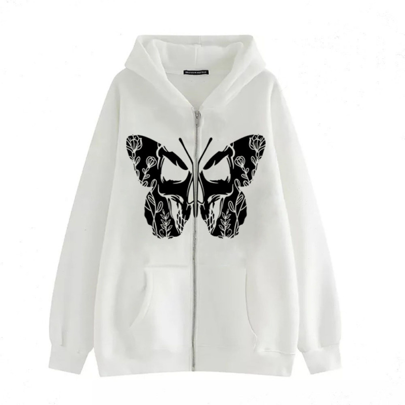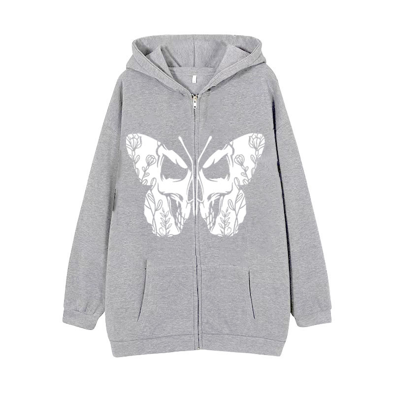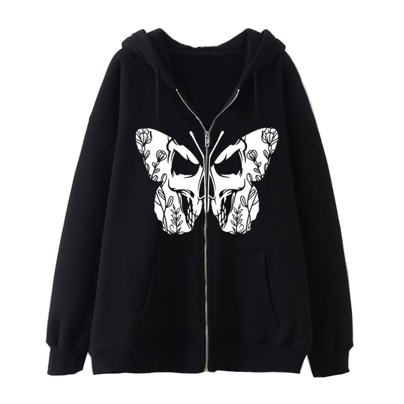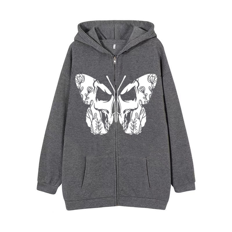Casual Cardigan Dark Butterfly Print Zip Sweatshirt