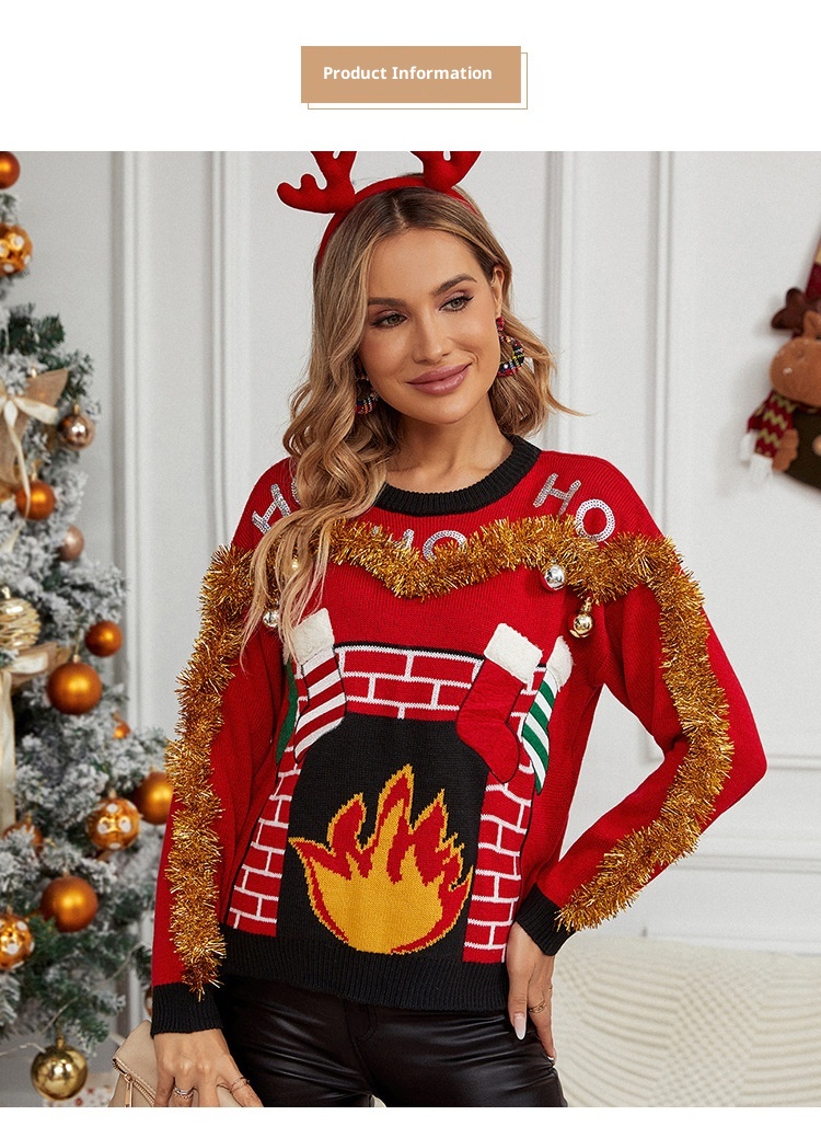 Casual Christmas Red Sweater For Women
