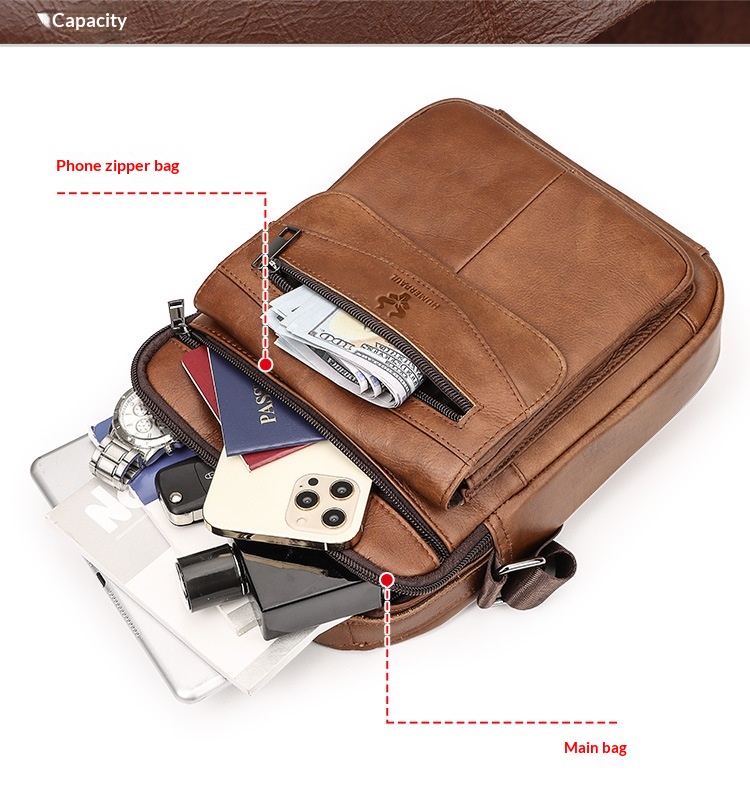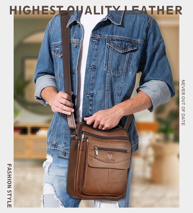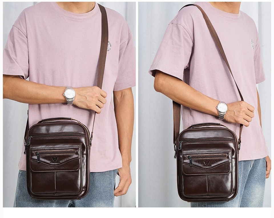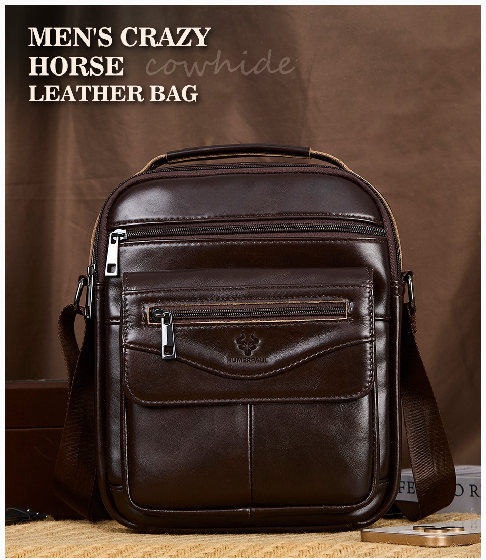 Casual Cross-border Mens Backpack Made From Full-grain Cowhide Leather