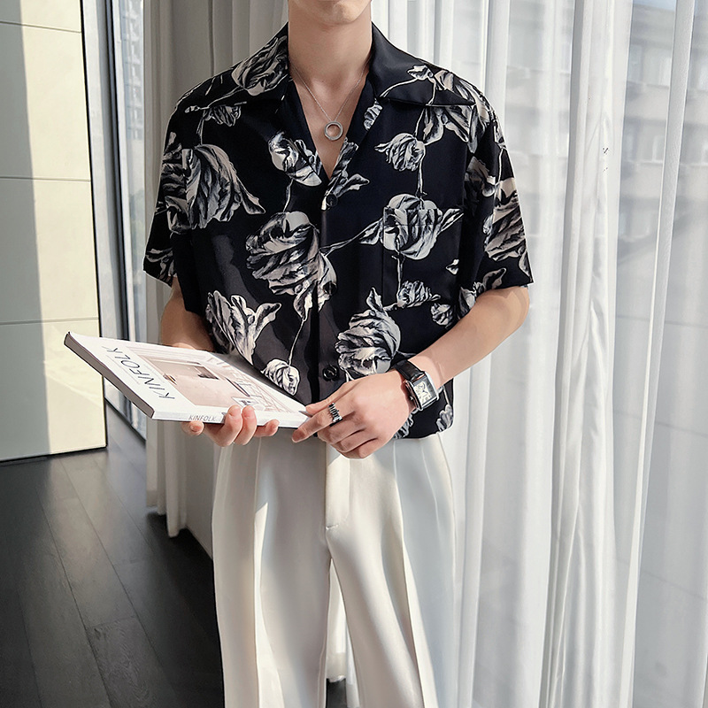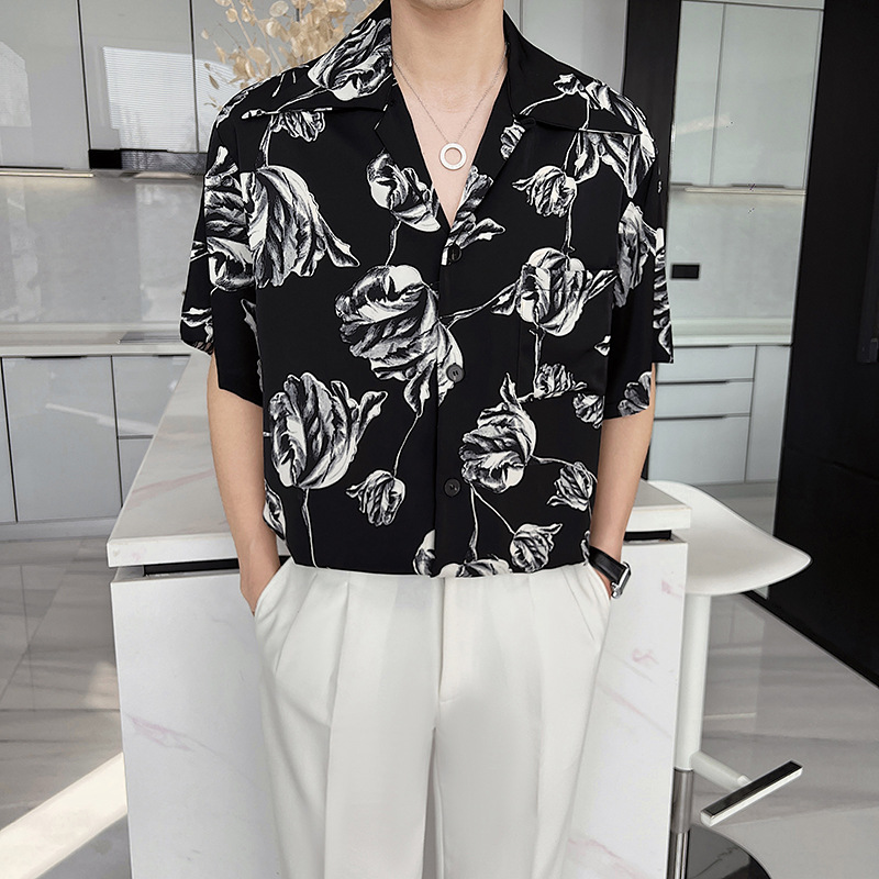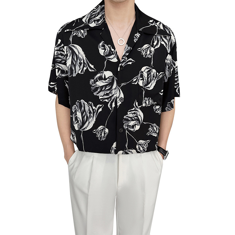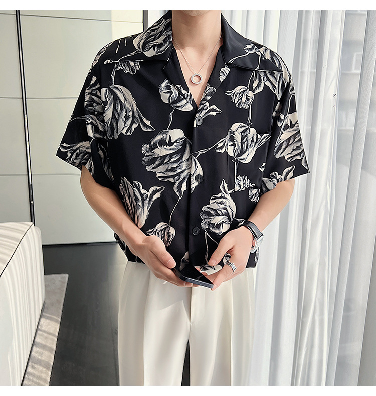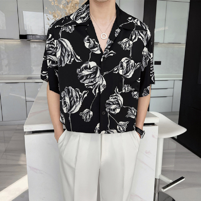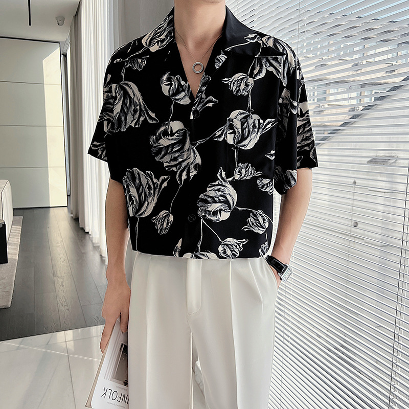 Casual Draping Summer Rose Cuban Collar Shirt