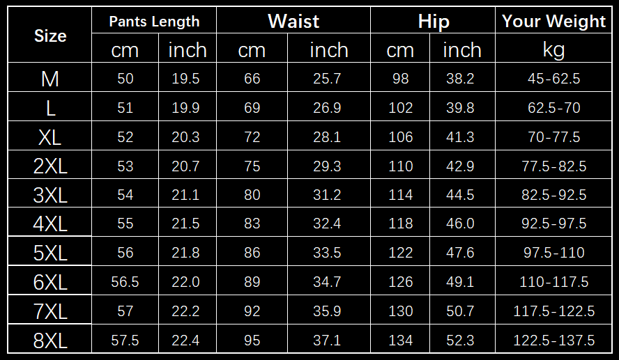 Size: M, L, XL, 2 XL, 3 XL, 4 XL, 5 XL, 6 XL, 7 XL 8 XL
