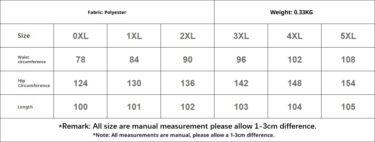 Size: 0XL, 1XL, 2XL, 3XL, 4XL, 5XL