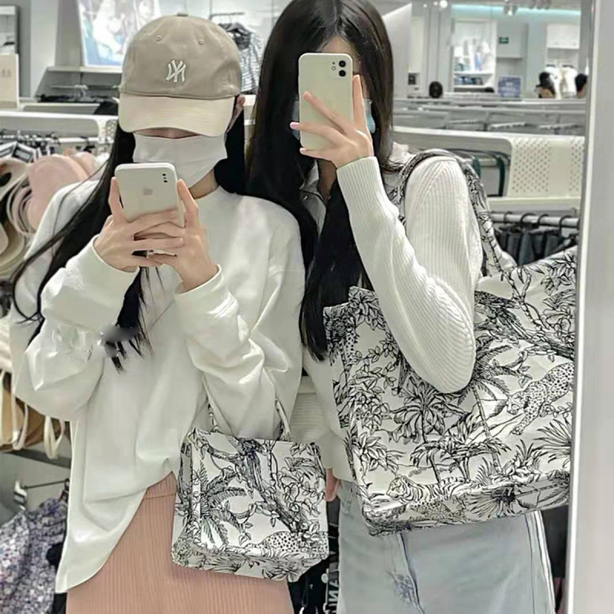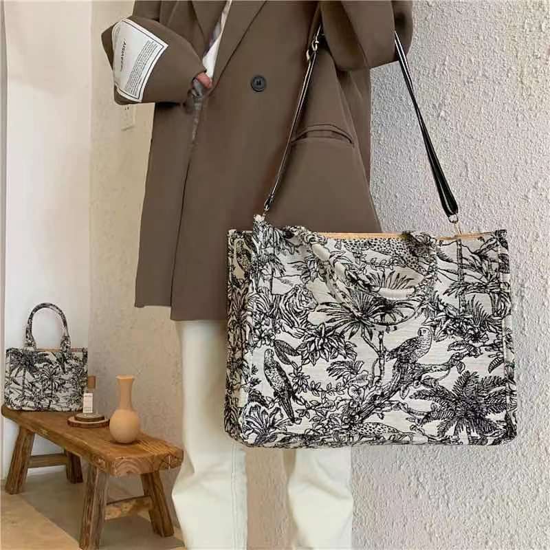Casual Embroidery Canvas Handbag Women Large Capacity Handle Bag