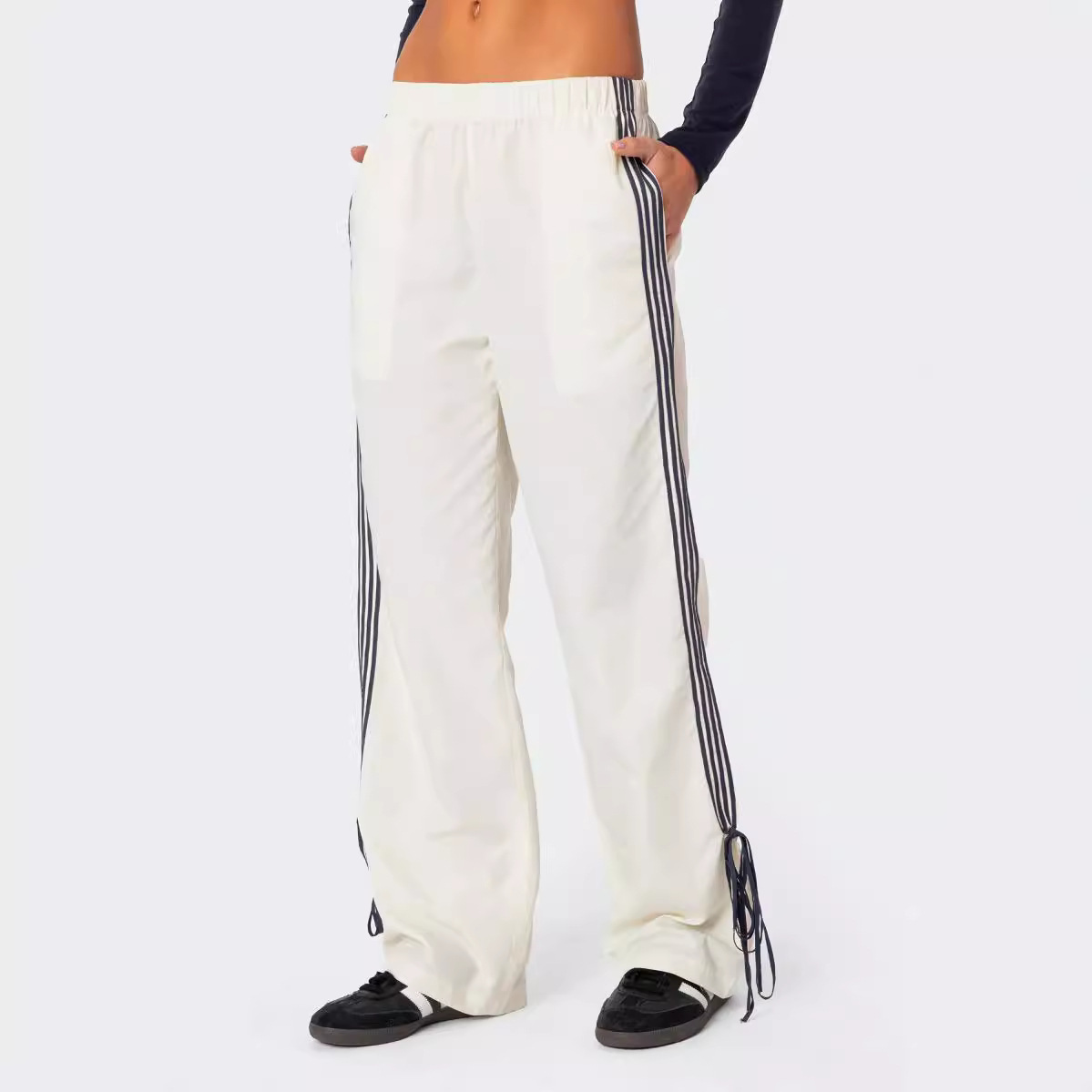 Casual Fashion All-matching Sports Four Bars Contrast Color Straight-leg Pants