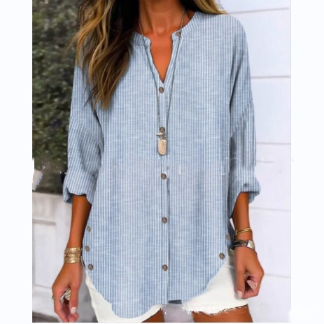 Casual Fashion Button Striped Long Sleeve Solid Color Shirt