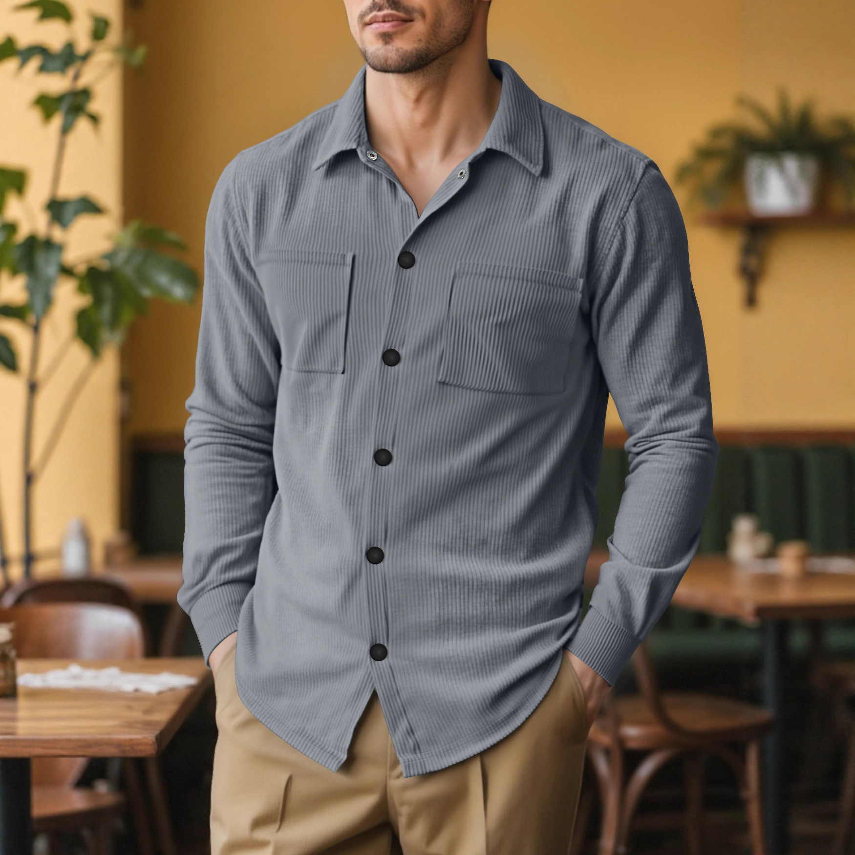 Casual Fashion Polo Collar Multi-pocket Jacket Top
