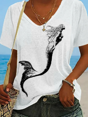 Casual Fashion Regular V-neck Printed Short-sleeved Shirt