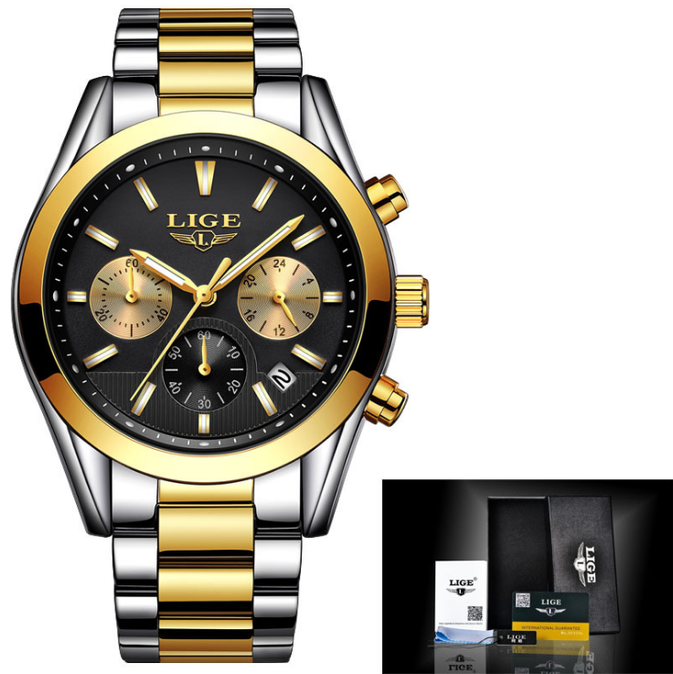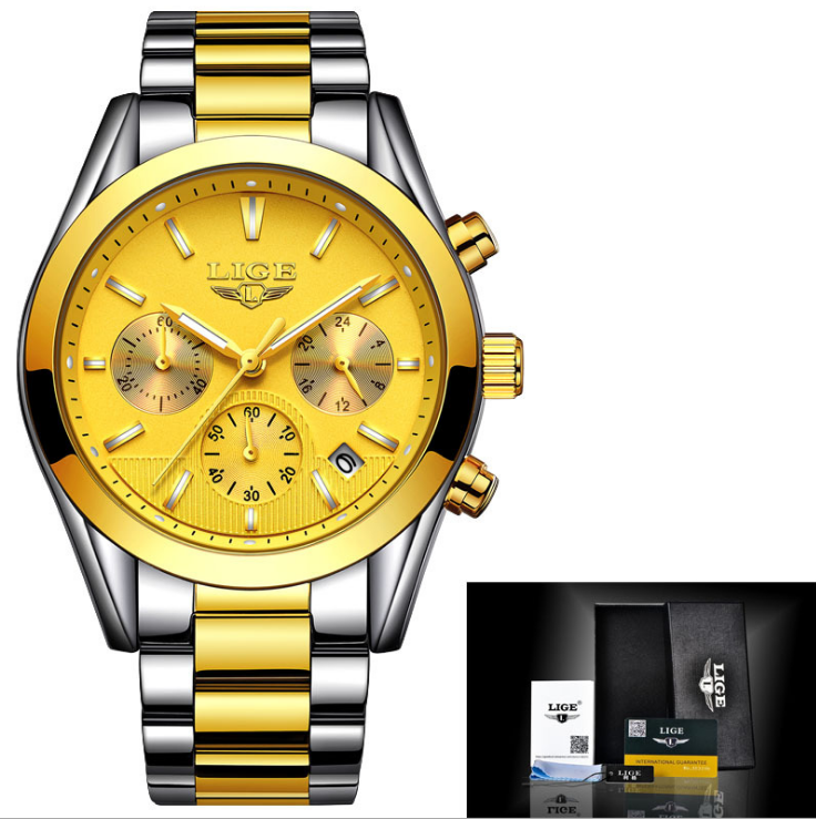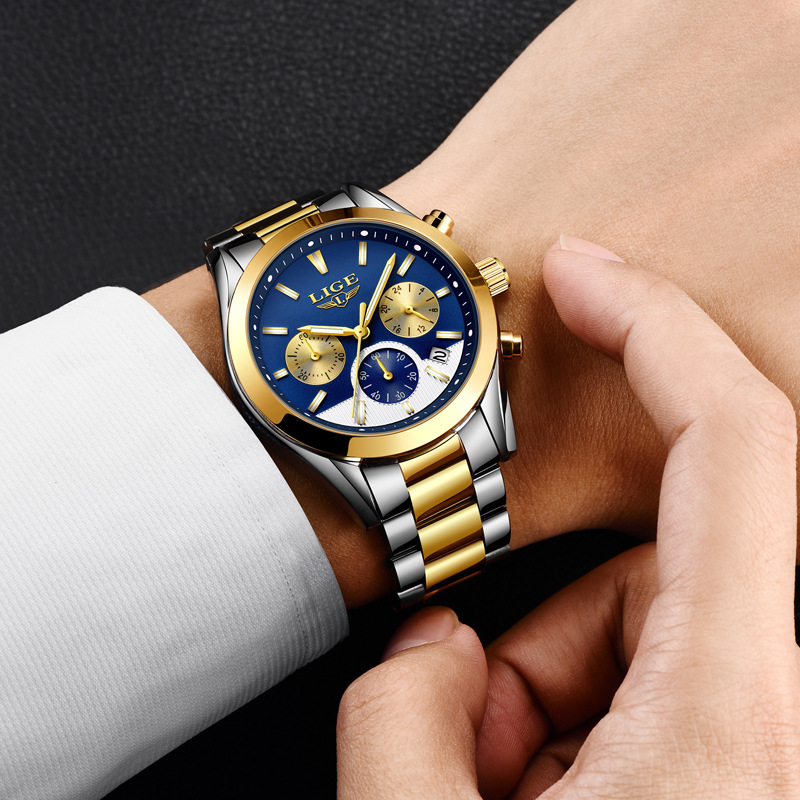 Brand Model LG9872 Applicable people, male style, fashion, patent source, no Waterproof, waterproof, 30M, movement type, quartz Movement brand Domestic Mirror material Mineral reinforced glass mirror Case material Alloy Item No. LG9872 Color LG9872A Gold Blue, LG9872B Gold Black, LG9872C Full Yellow, LG9872D Gold White, LG9872E Silver Blue, LG9872F Silver Black, LG9872G Silver White