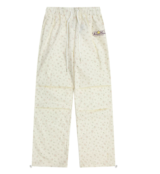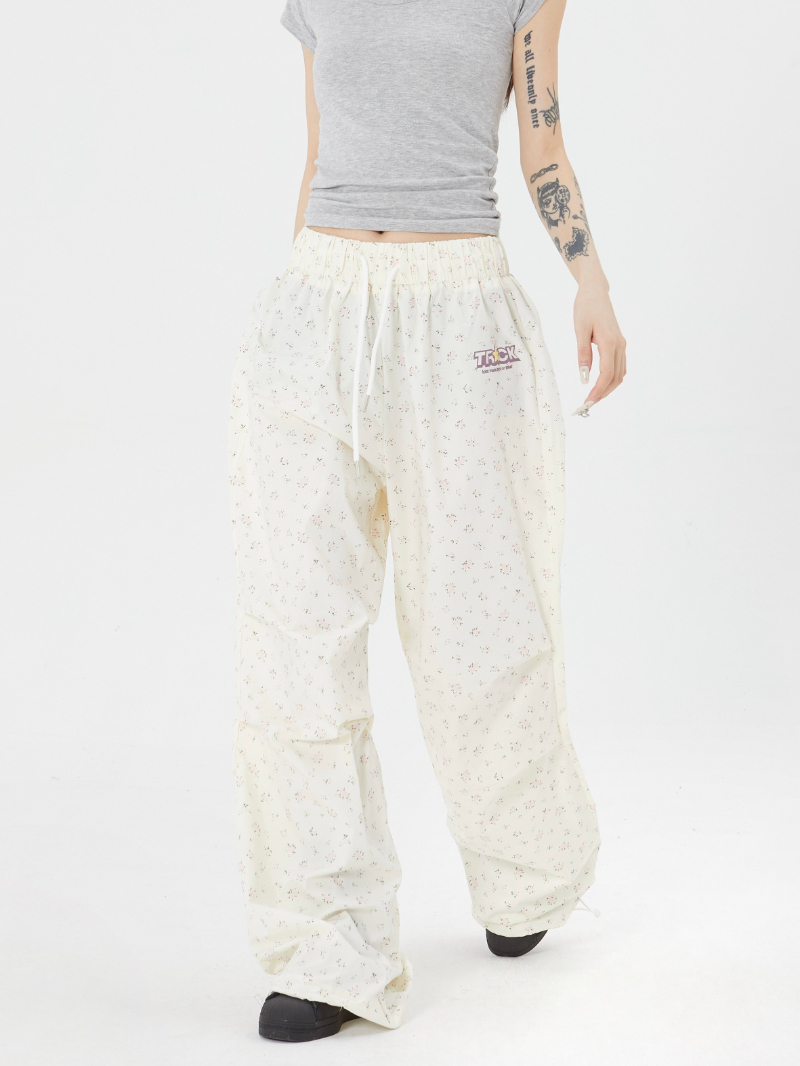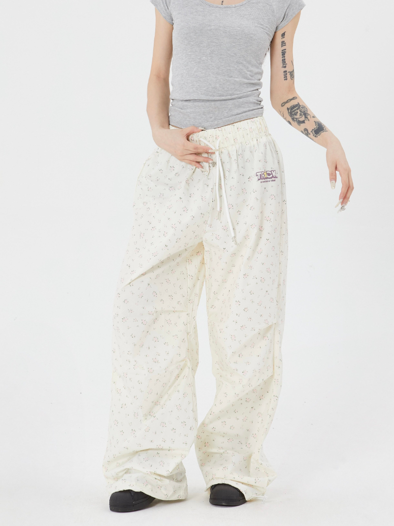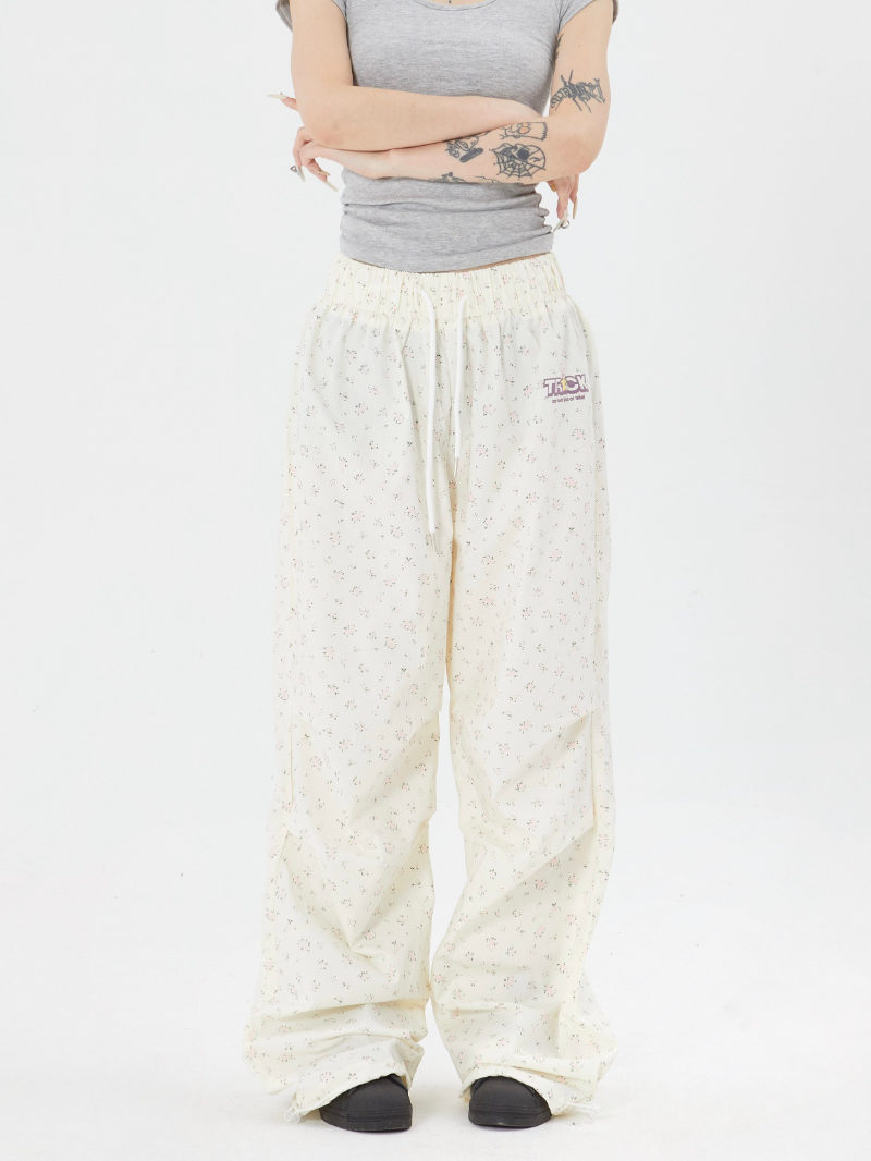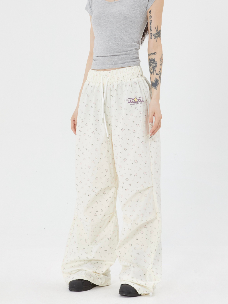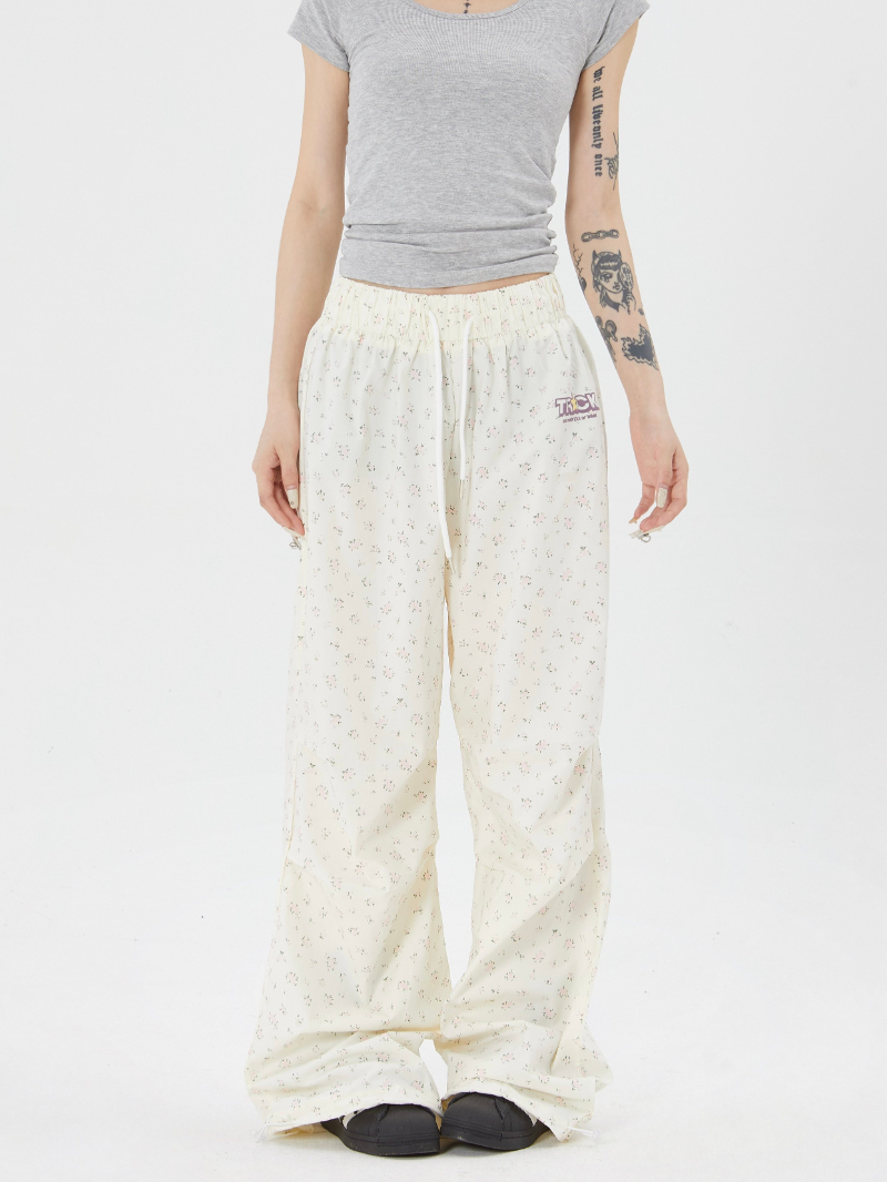 Casual Flared Pants With A Small Floral All-over Print Versatile Street-style Wide-leg Trousers