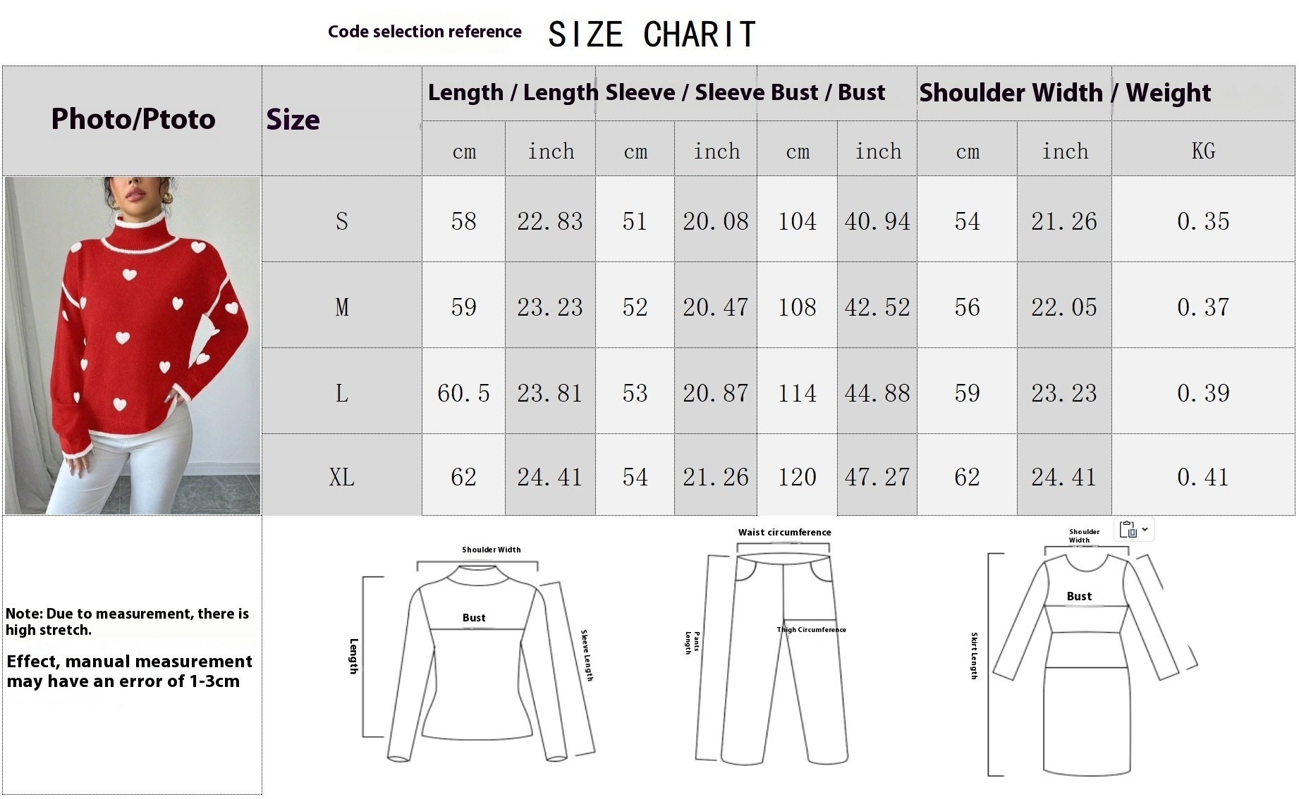 Product information: Pattern: love Color: red Size: S,M,L,XL Popular elements: love Fabric name: Polyester Applicable Gender: Female