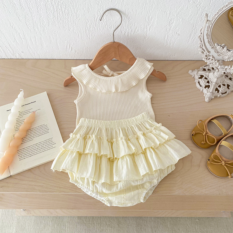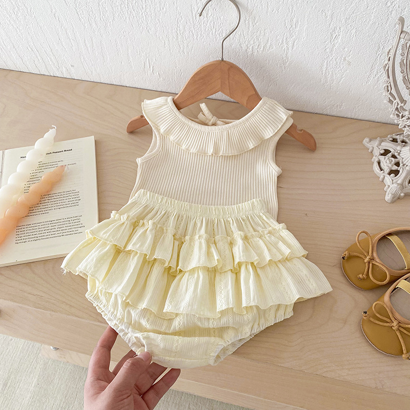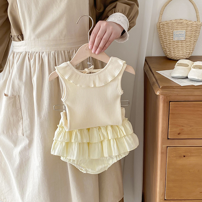 Color: beige backless sleeveless ruffled collar top, beige hundred pages double layer Bud waist shorts