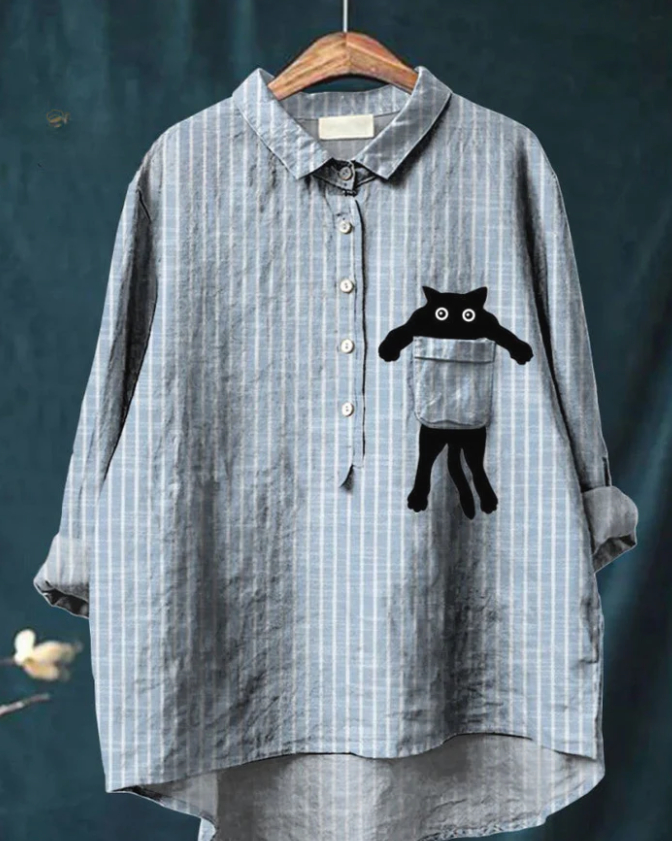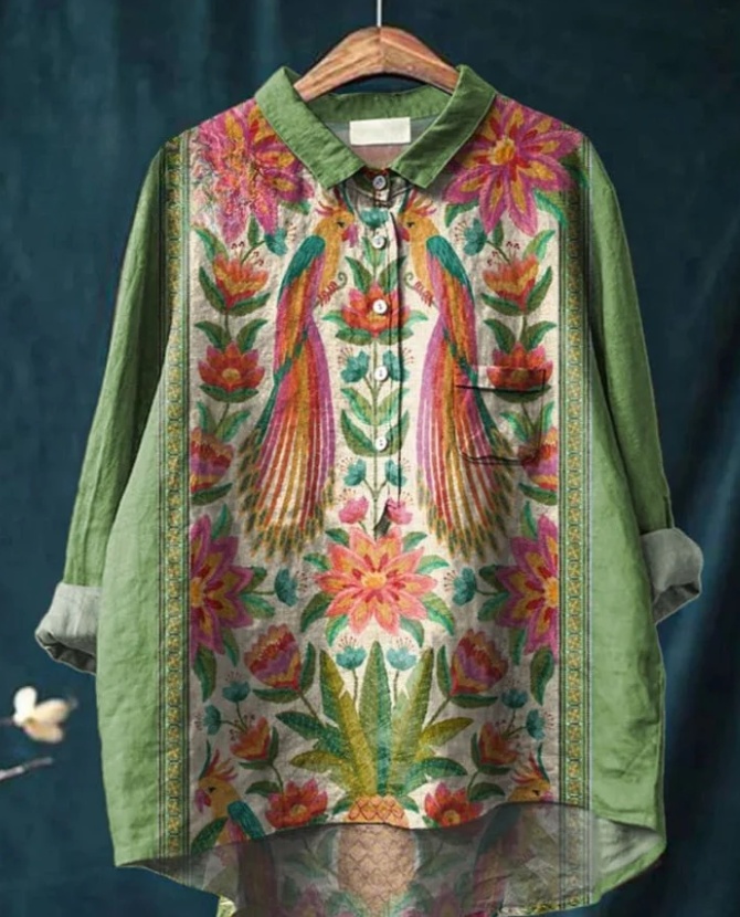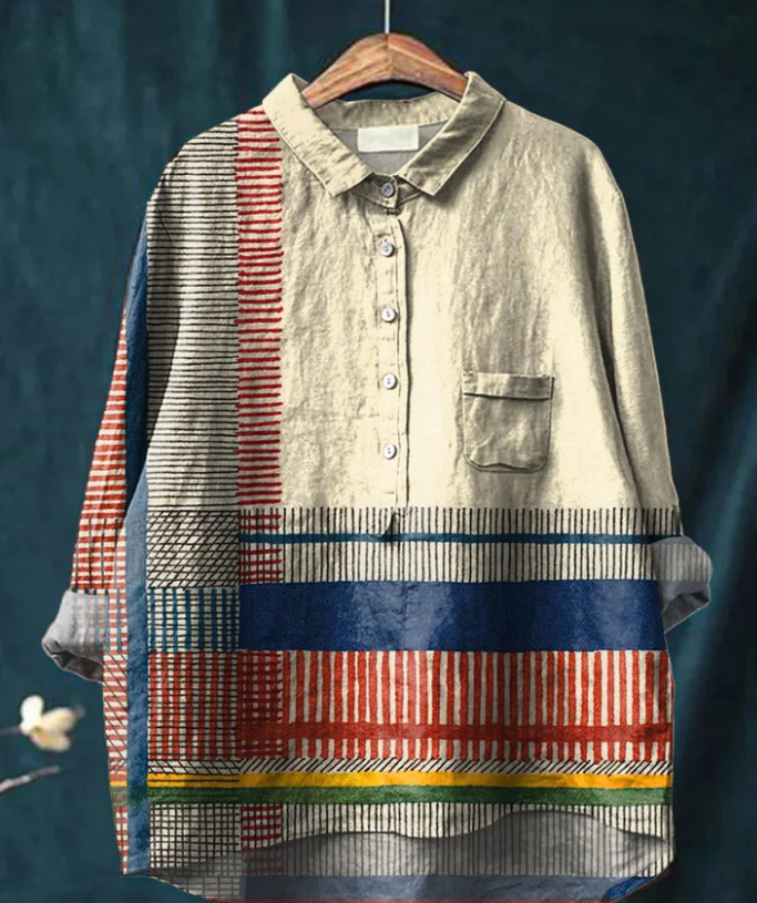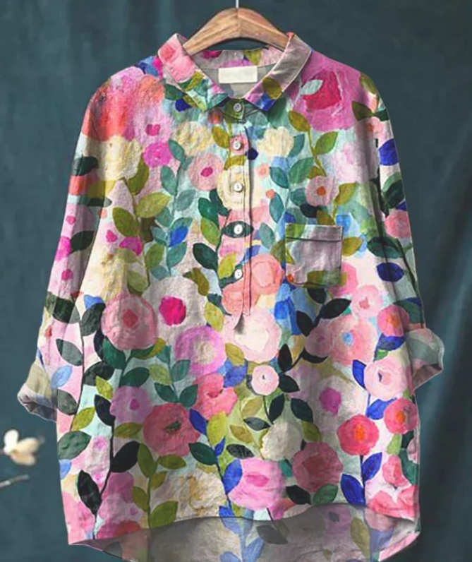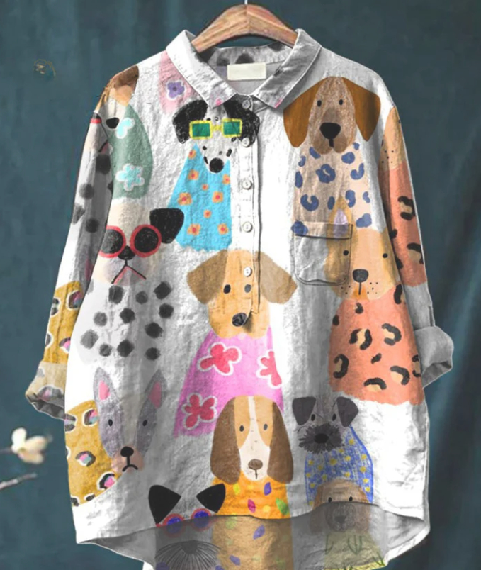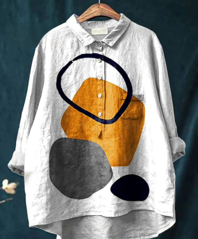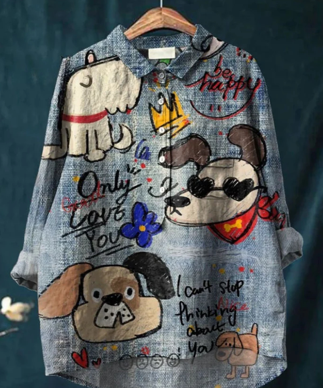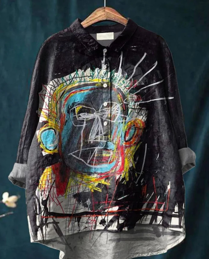 Casual Graffiti Print V-neck Single-button Long-sleeved Shirt