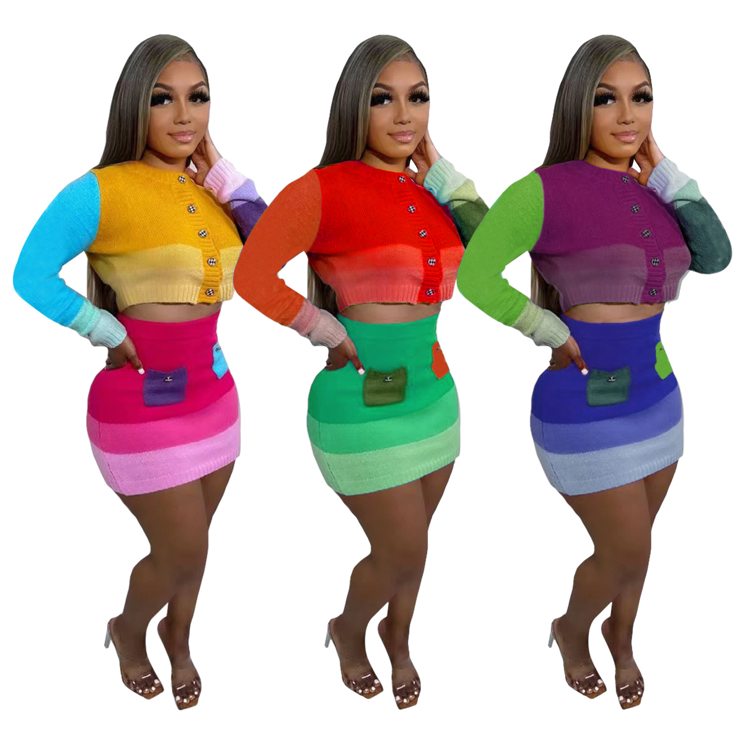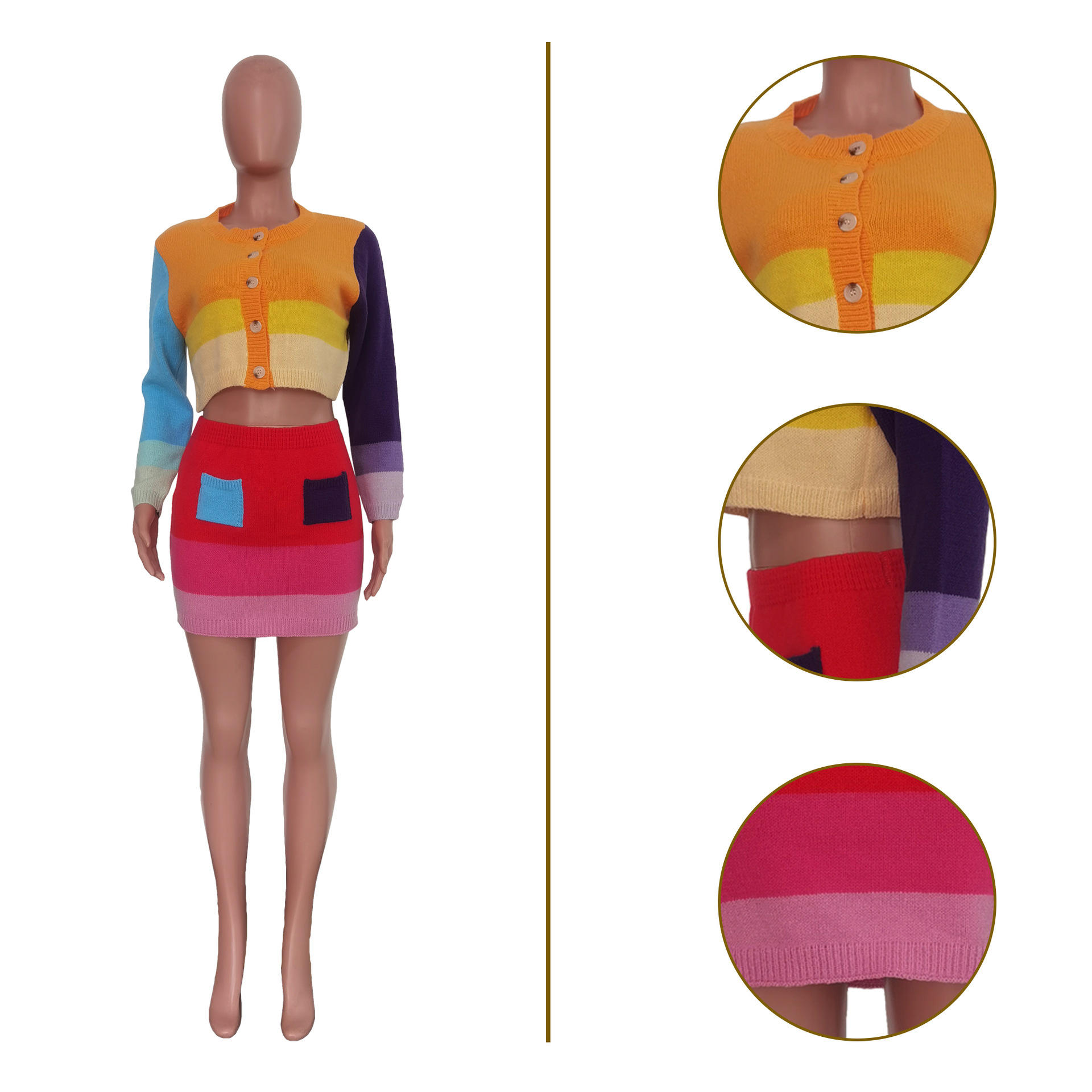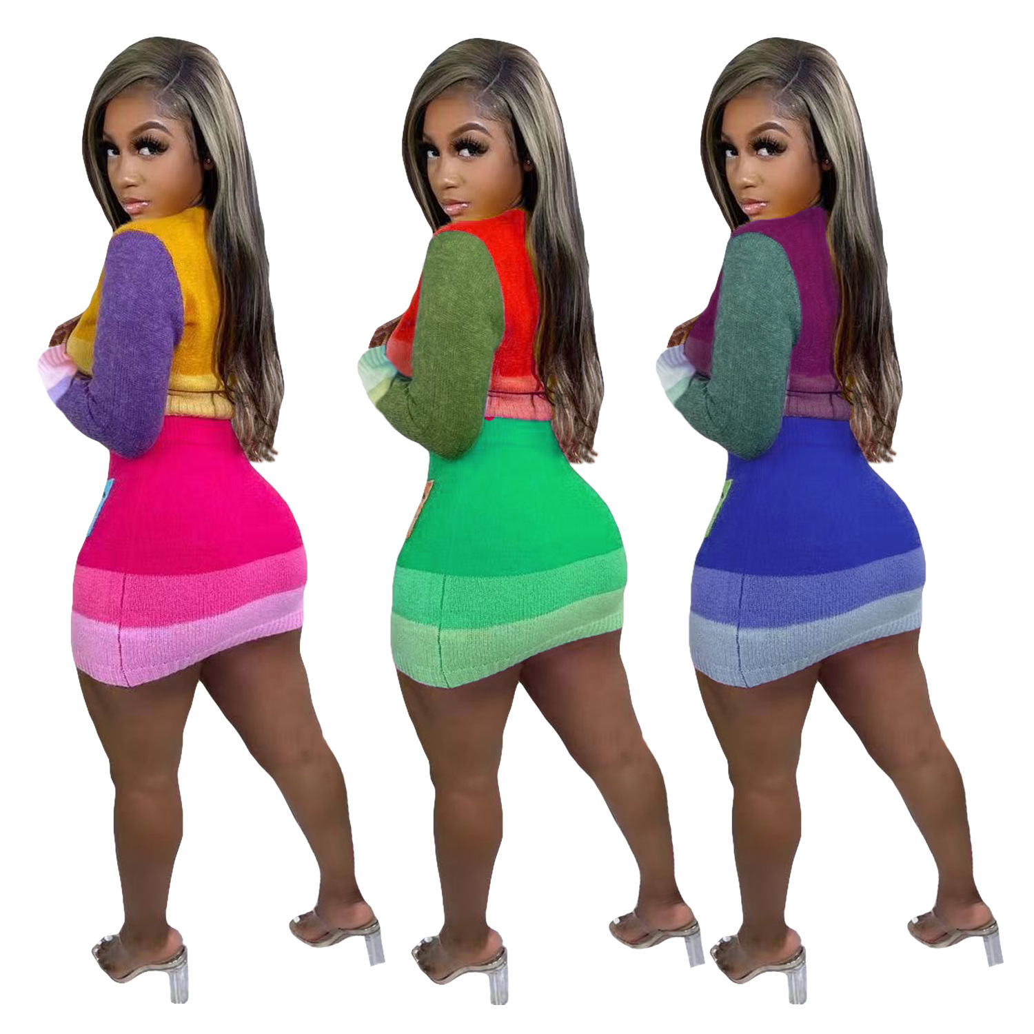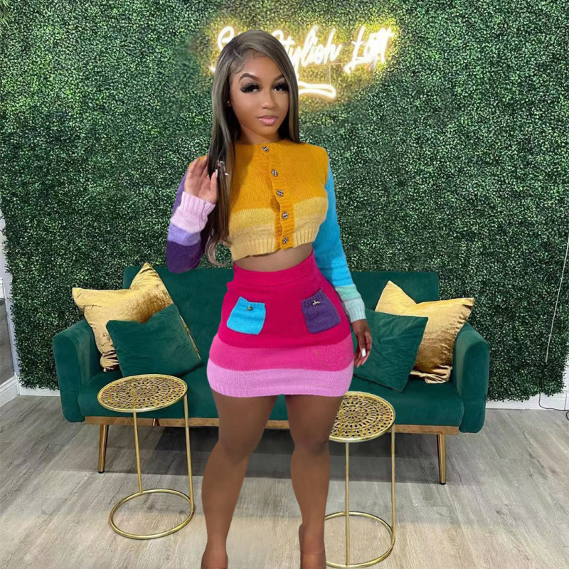 Casual Handmade Knitted Skirt With Contrast Color Suit