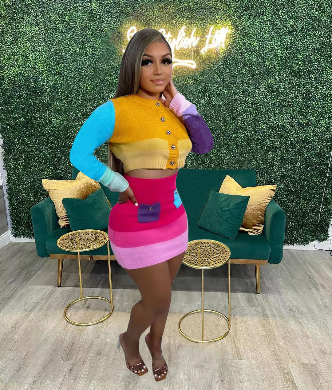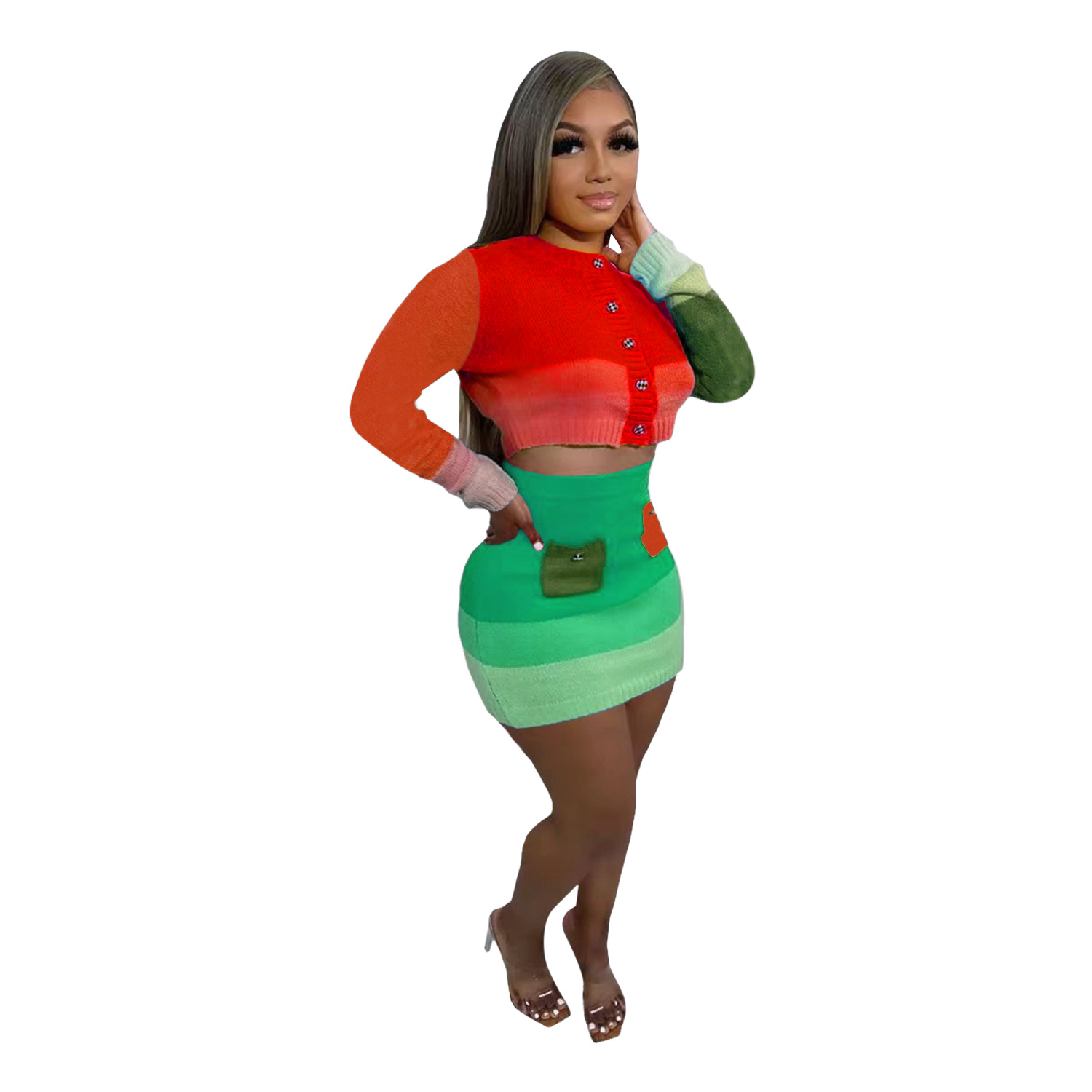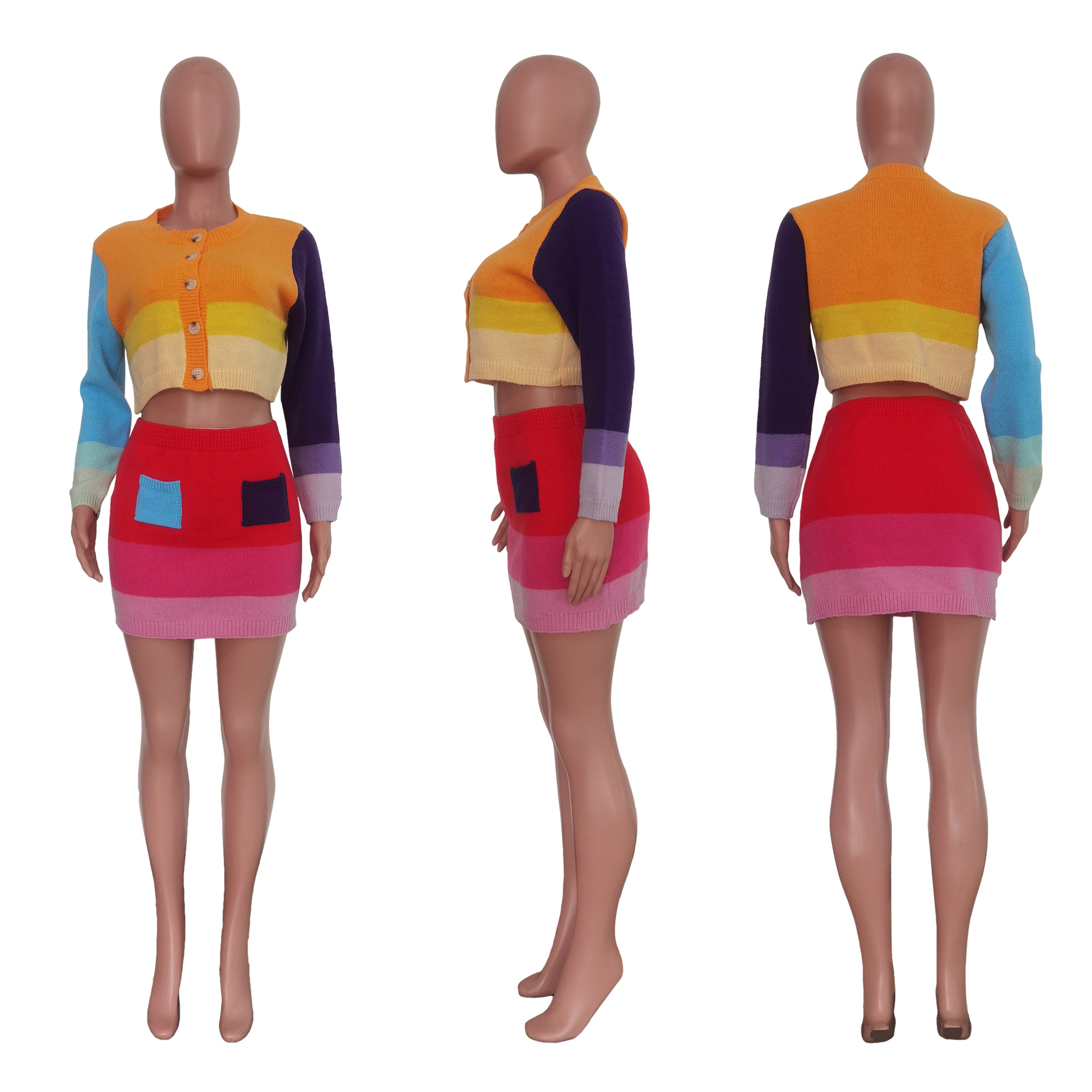 Casual Handmade Knitted Skirt With Contrast Color Suit