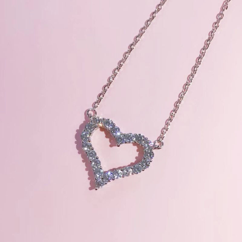 Color: Diamond-Set Heart Pendant [with 5 cm Extension Chain] in Platinum Gold