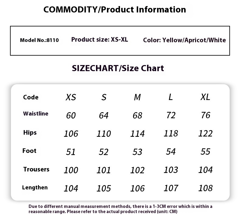 Color: 8110 apricot [pants],8110 apricot [lengthened],8110 yellow [pants],8110 yellow [lengthened],8110 White [pants],8110 White [lengthened]]