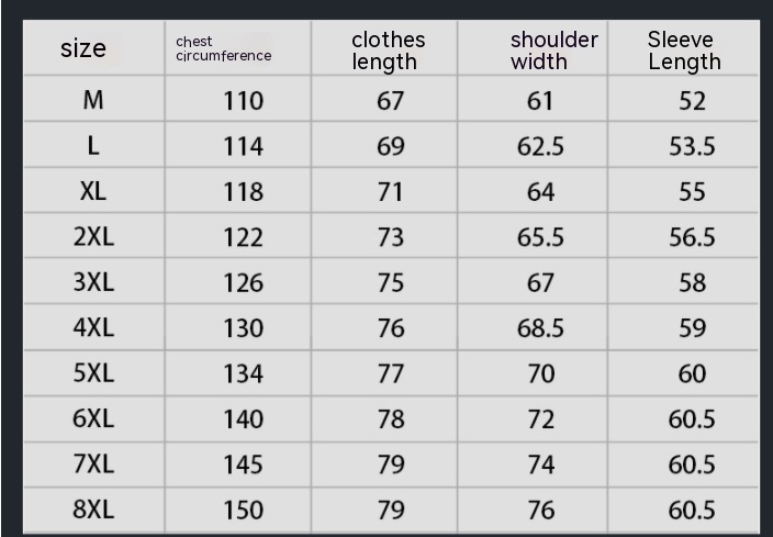 Size: M,L,XL,XXL,XXL,XXXXL,5XL,6XL,7XL,8XL
