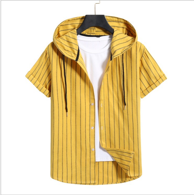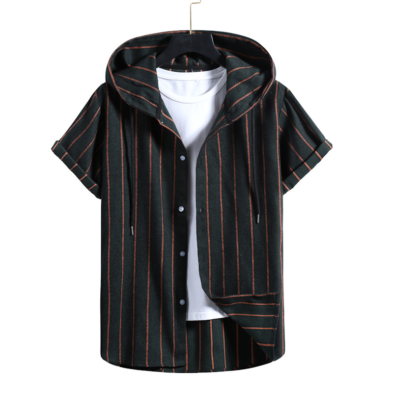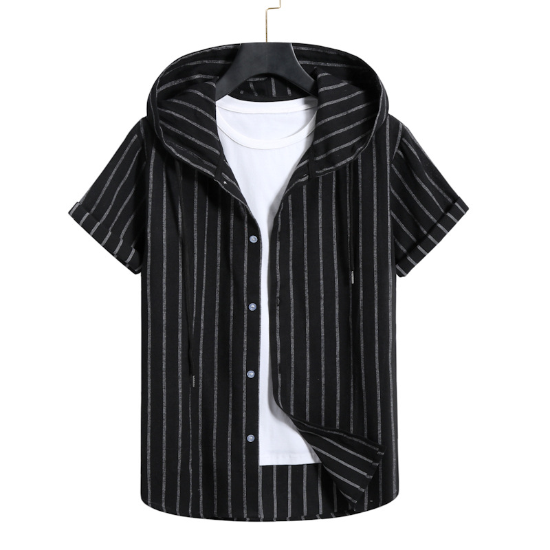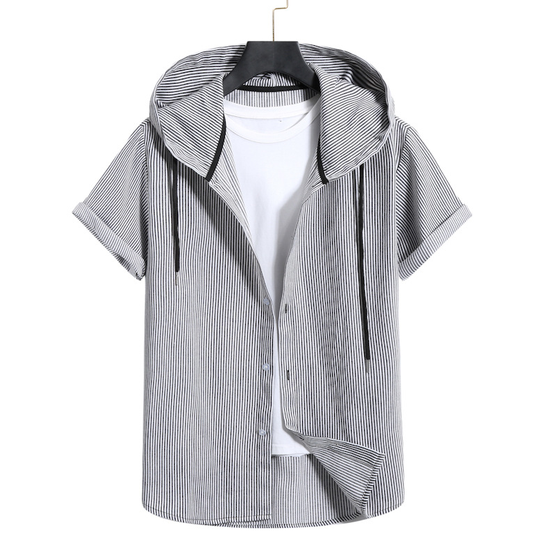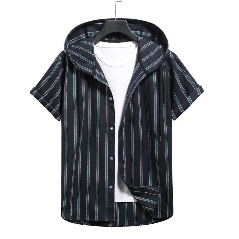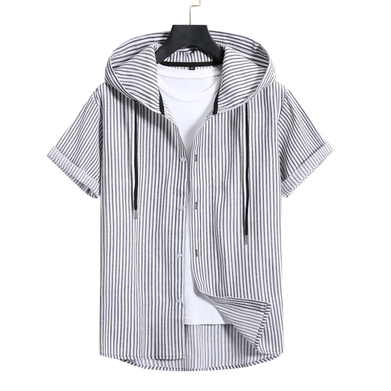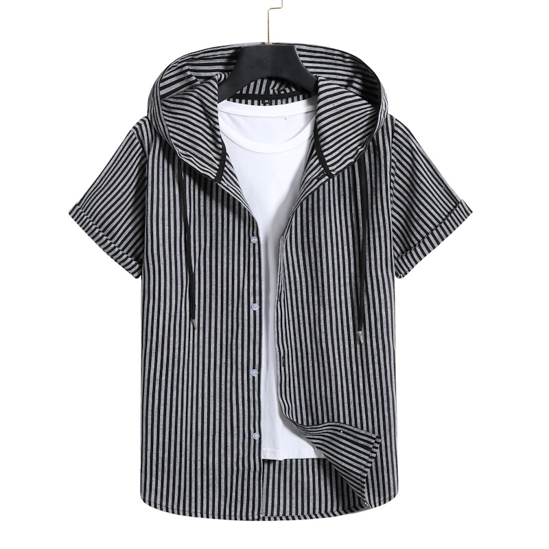 Casual Hooded Striped Short-Sleeved Color-Block Printing Fashion Youth Shirt