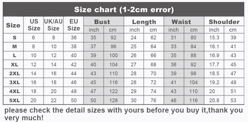 Size: S,m,l,xl,2xl,3xl,4xl,5xl
